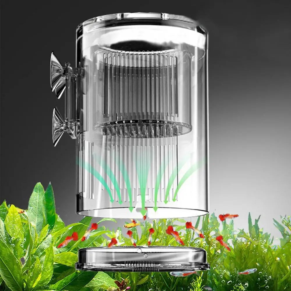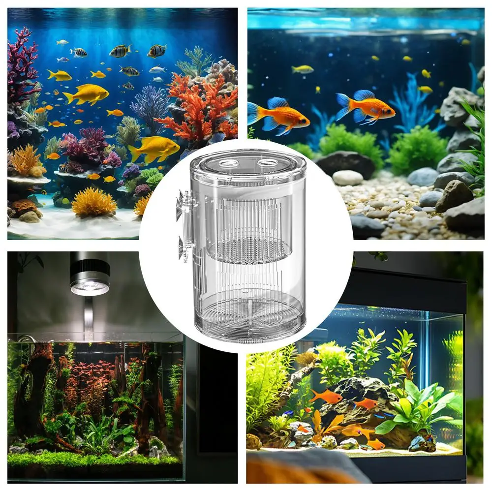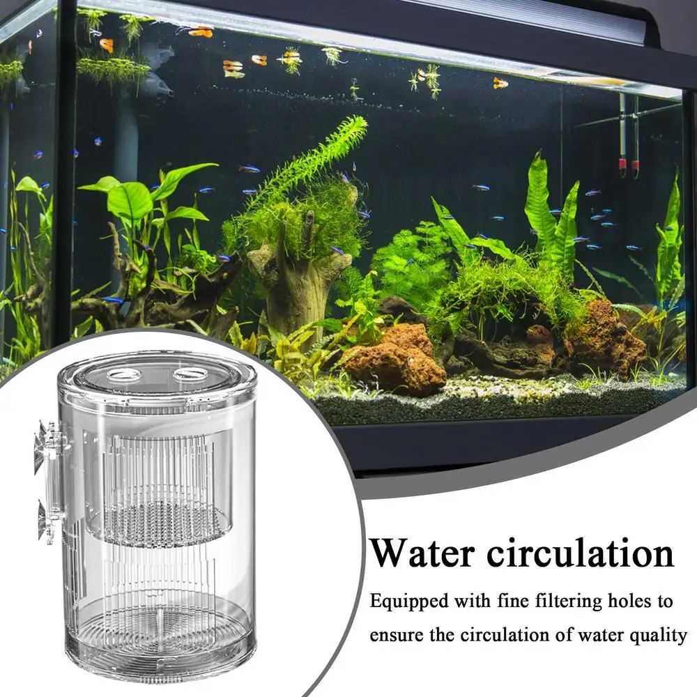 El material acrílico transparente permite una observación clara de las actividades de los peces en la caja criadora, al mismo tiempo que brinda durabilidad y seguridad para las necesidades de incubación y aislamiento de camarones, betta, cachorros o killifishes.Las ventosas aseguran firmemente la incubadora de incubación a las paredes del tanque, lo que ayuda a procesos de aclima estables sin perturbar la vida acuática.