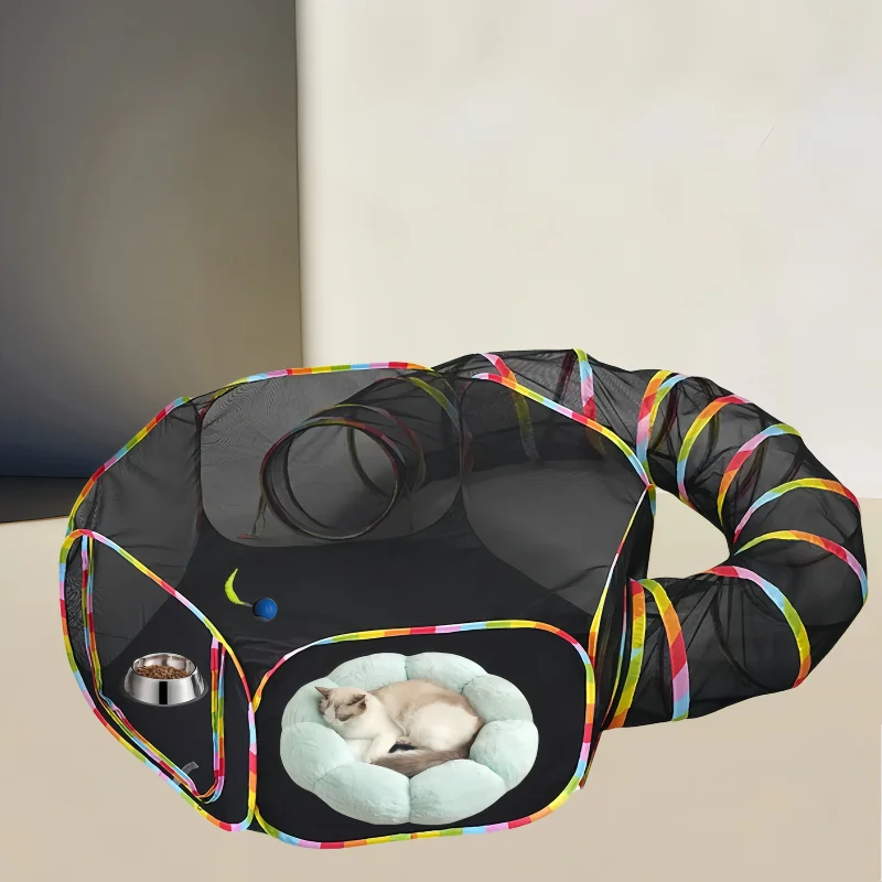 Caja para gatos para interiores y exteriores, parque infantil plegable para mascotas, tiras de arcoíris, parque infantil portátil para gatos, túnel, perros, gatos, conejitos