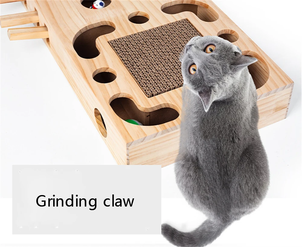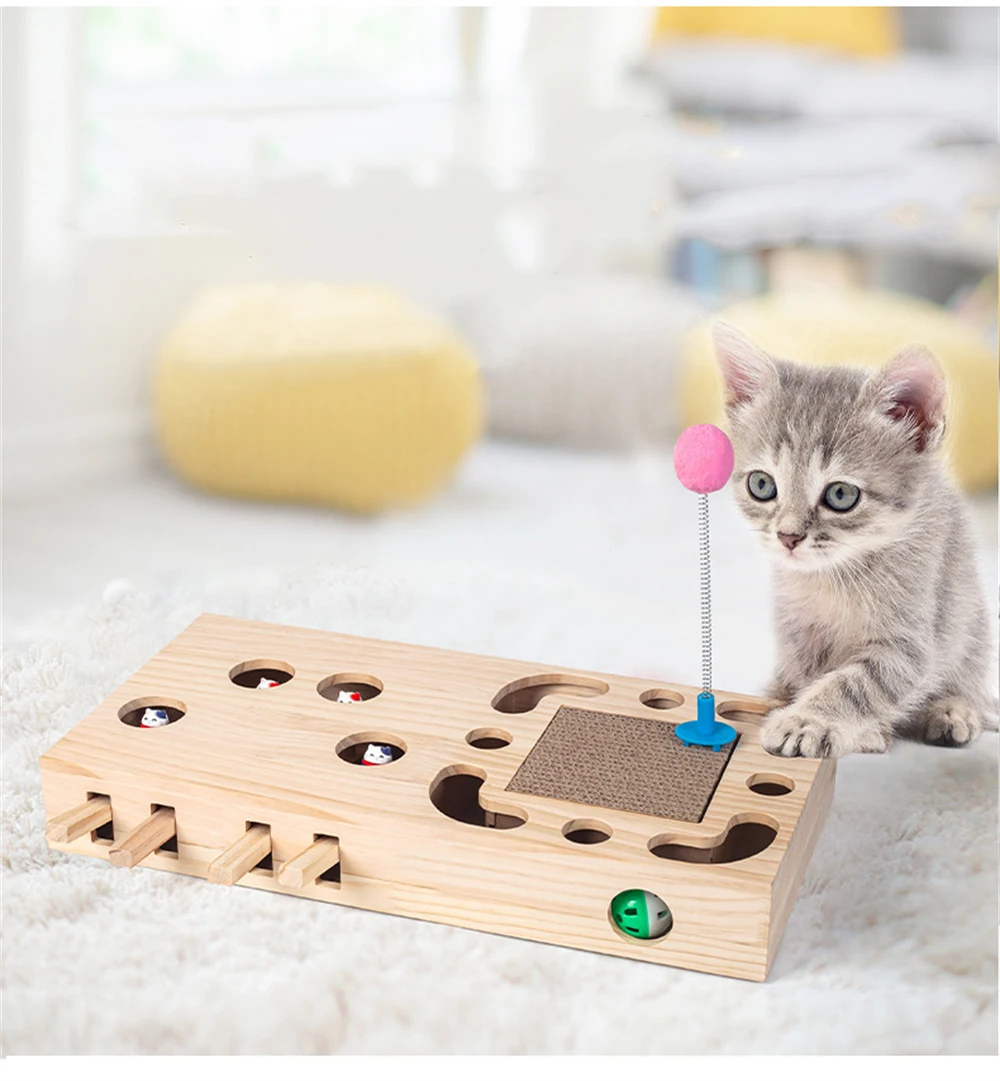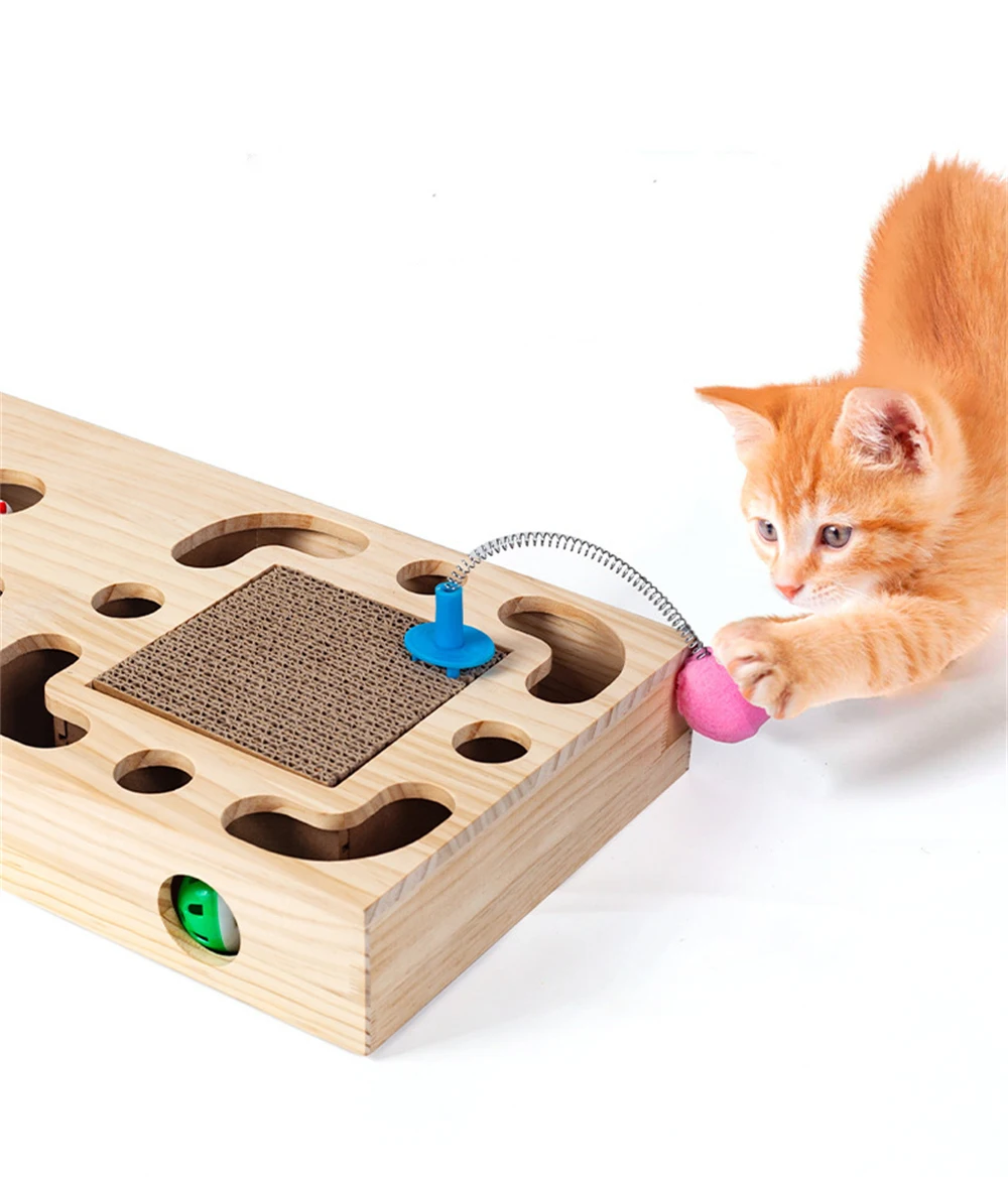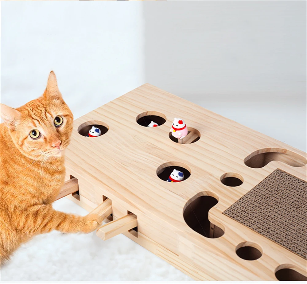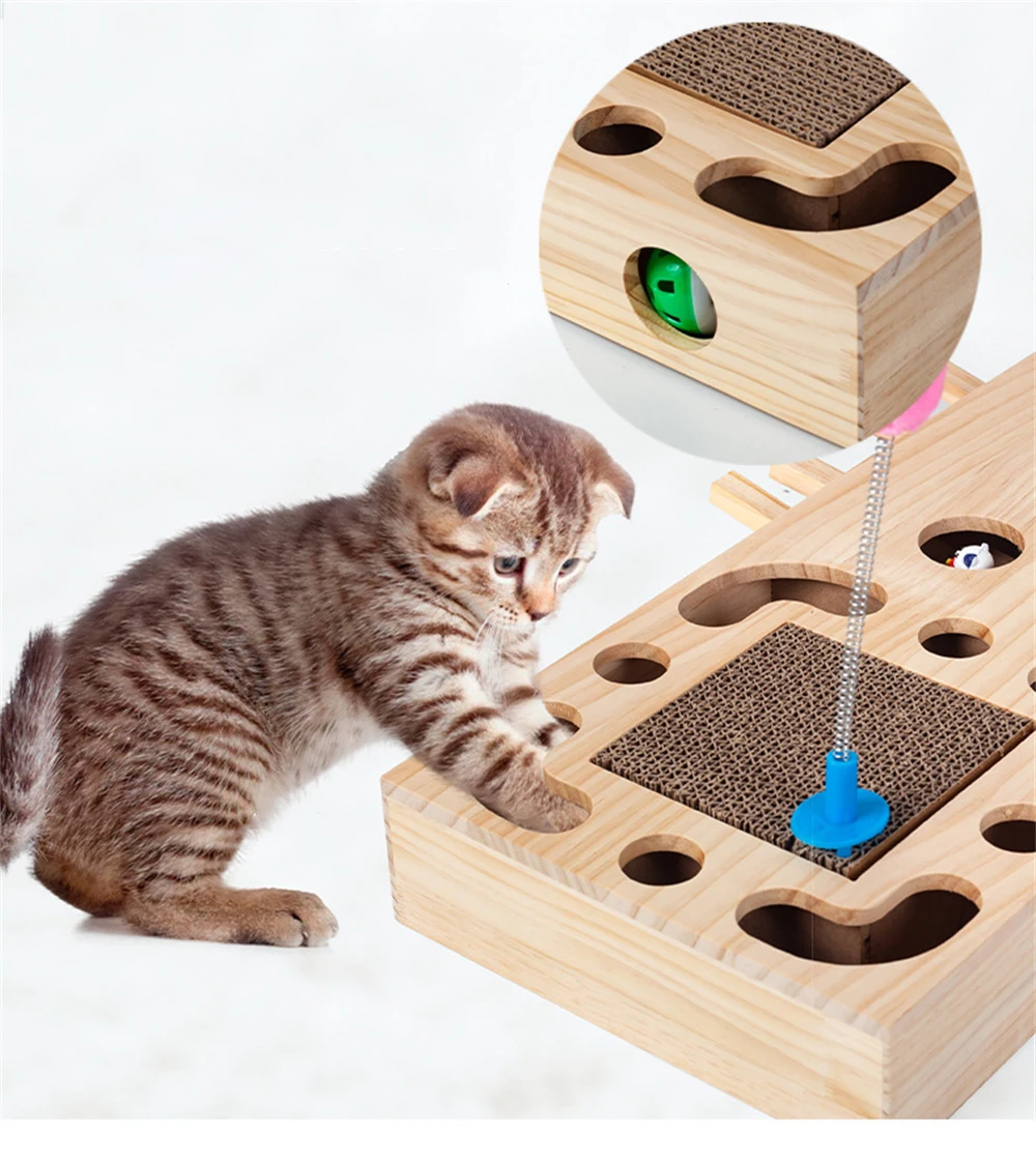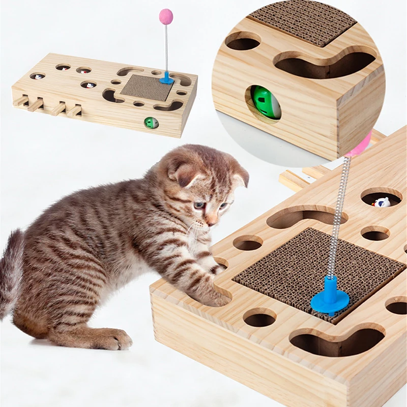 Caja de juego de madera para gatos, juguetes interactivos para gatos, ejercicio para mascotas, entrenamiento divertido, palo rascador para gatos