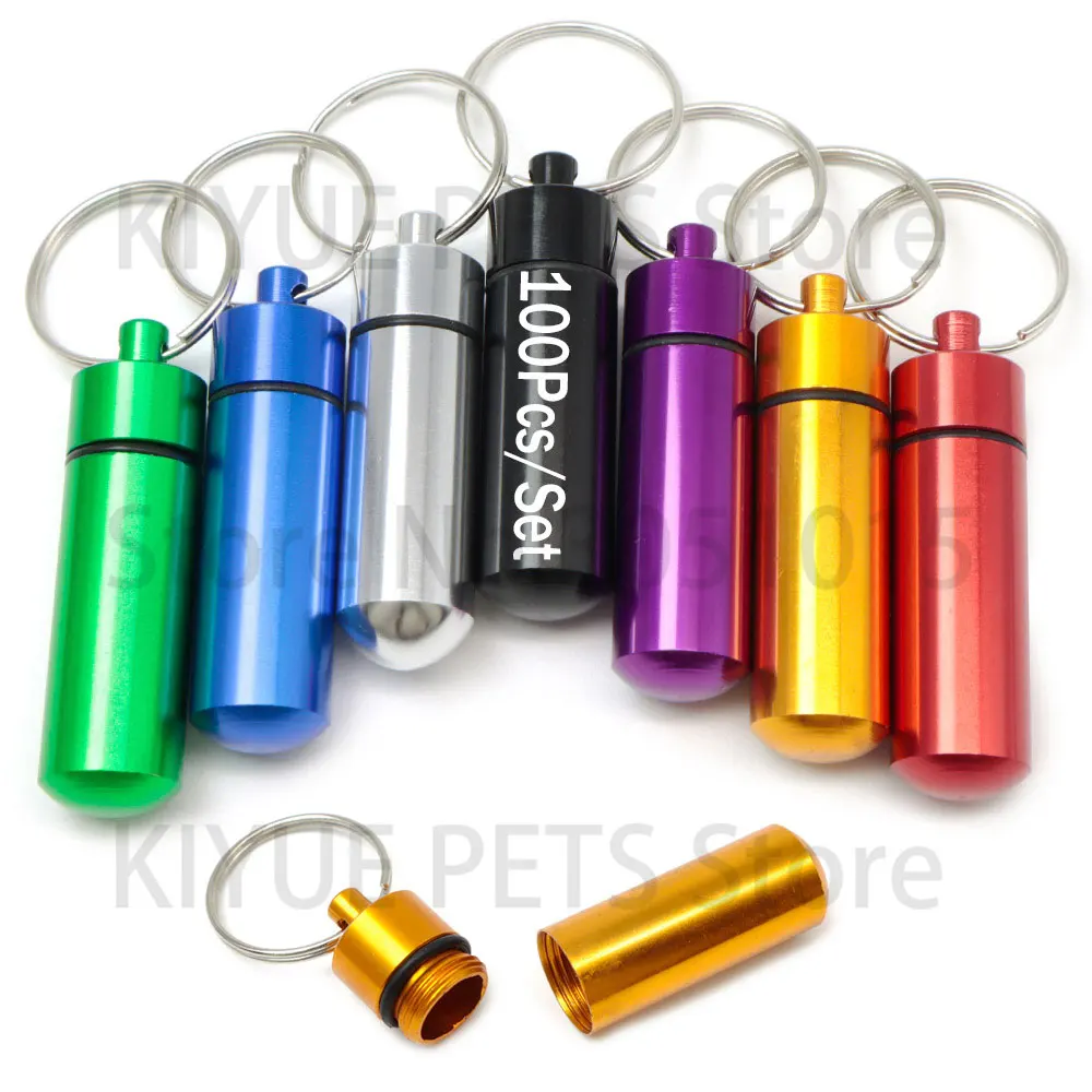 Caja de pastillas de aluminio resistente al agua con nombre y etiquetas de identificación para perro, contenedor personalizado, llavero, caja de medicinas, 100, venta al por mayor
