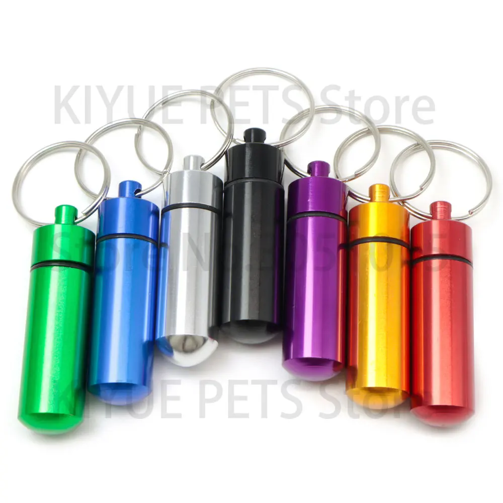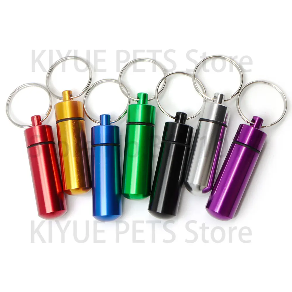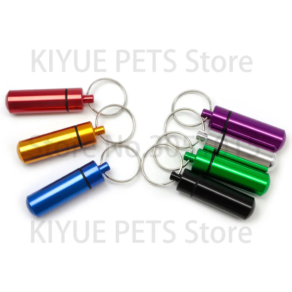 Pastillero de aluminio resistente al agua con etiquetas de identificación y nombre colgante de perro al por mayor, contenedor personalizado, llavero, caja de medicinas