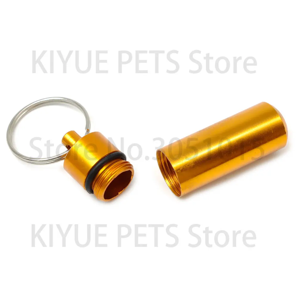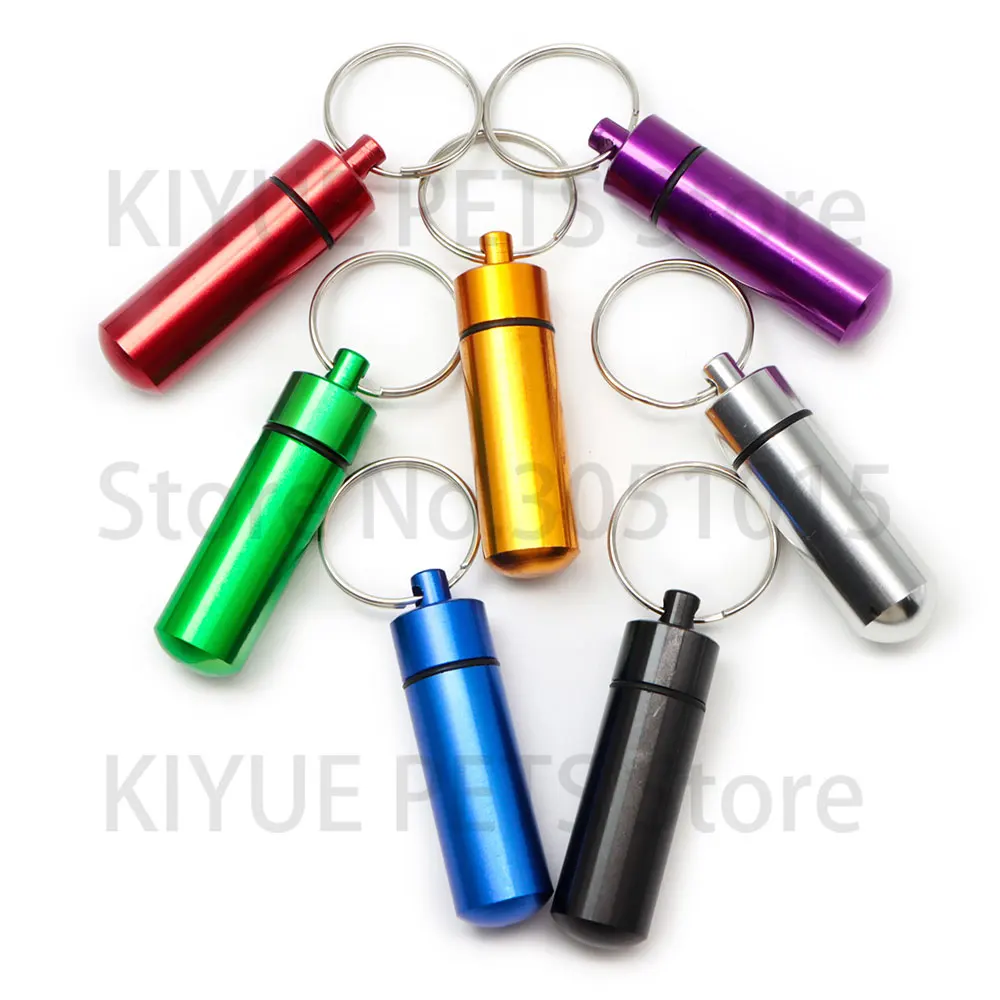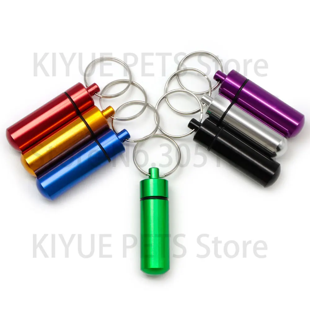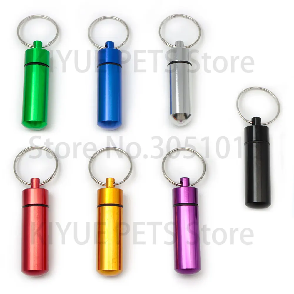 Pastillero de aluminio resistente al agua con etiquetas de identificación y nombre colgante de perro al por mayor, contenedor personalizado, llavero, caja de medicinas