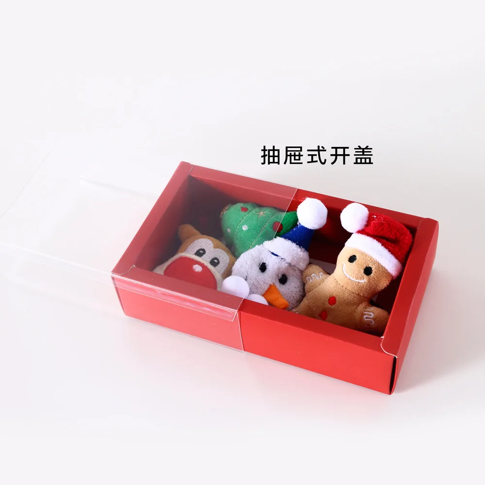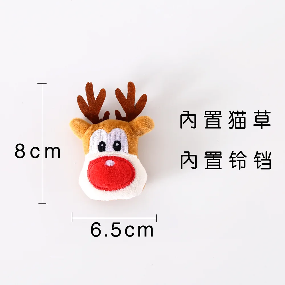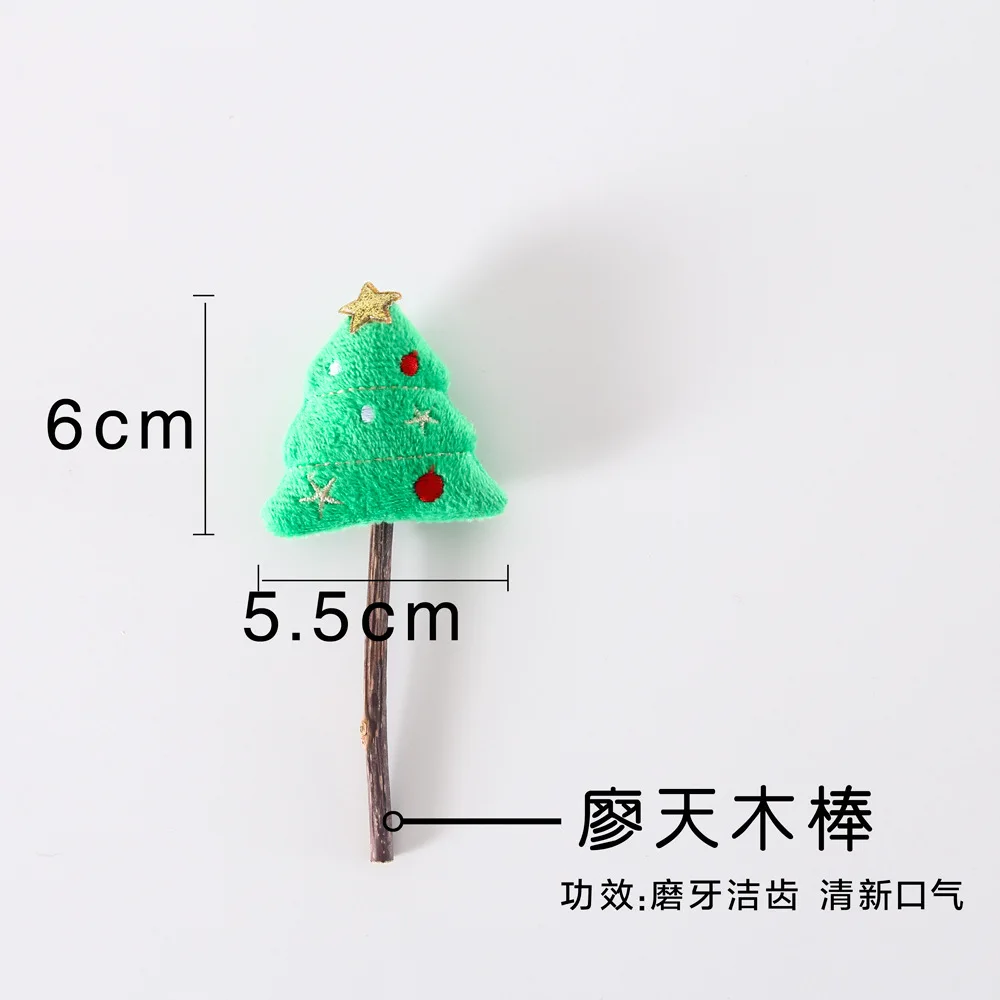 Caja de regalo de juguete de peluche de Navidad para gatos, árbol de muñeco de nieve de viejo de peluche, campana de hierba gatera integrada, accesorios para perros pequeños