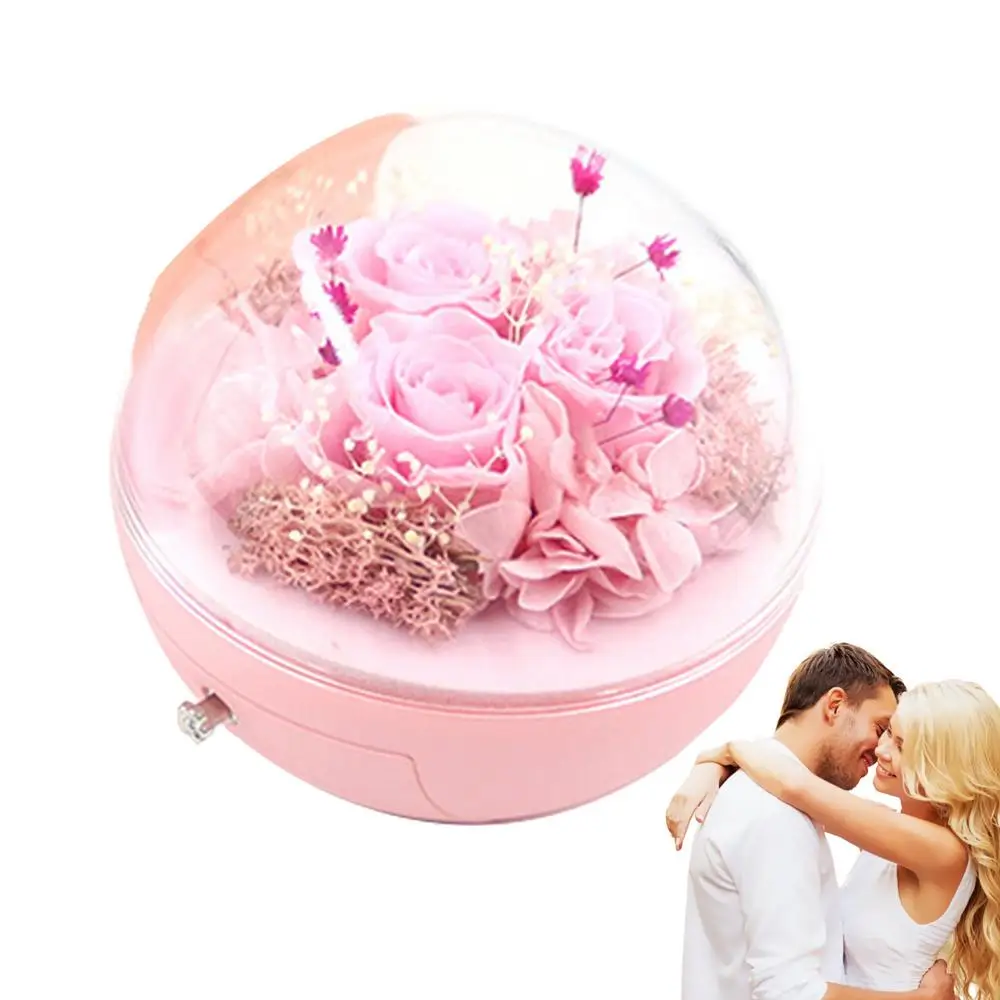 4. Almacenamiento versátil: Guarde sus preciosas joyas, collares y anillos en esta hermosa caja de regalo de rosas preservadas. Su diseño multiusos también lo convierte en una vitrina ideal.