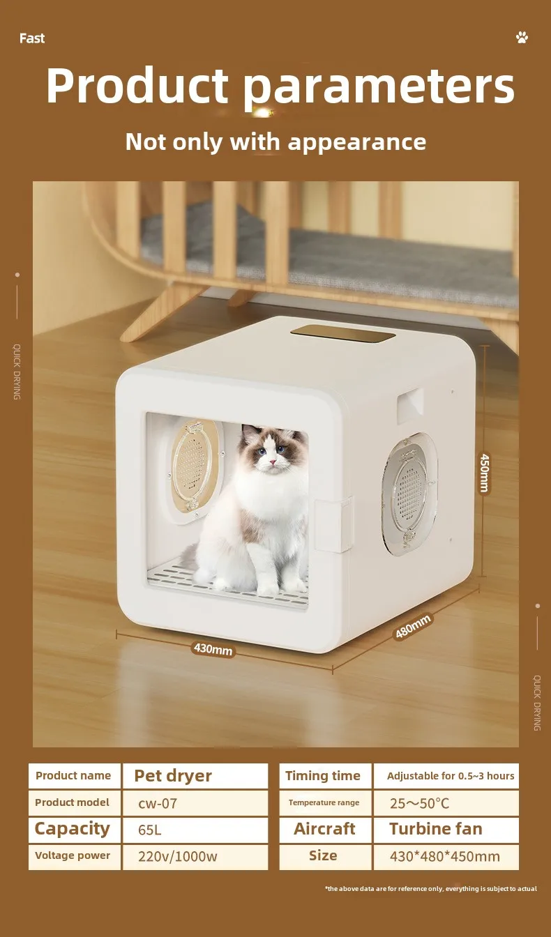 Caja de secado para mascotas, velocidad de aire ajustable, hogar, gato, perro, baño para mascotas, caja secadora