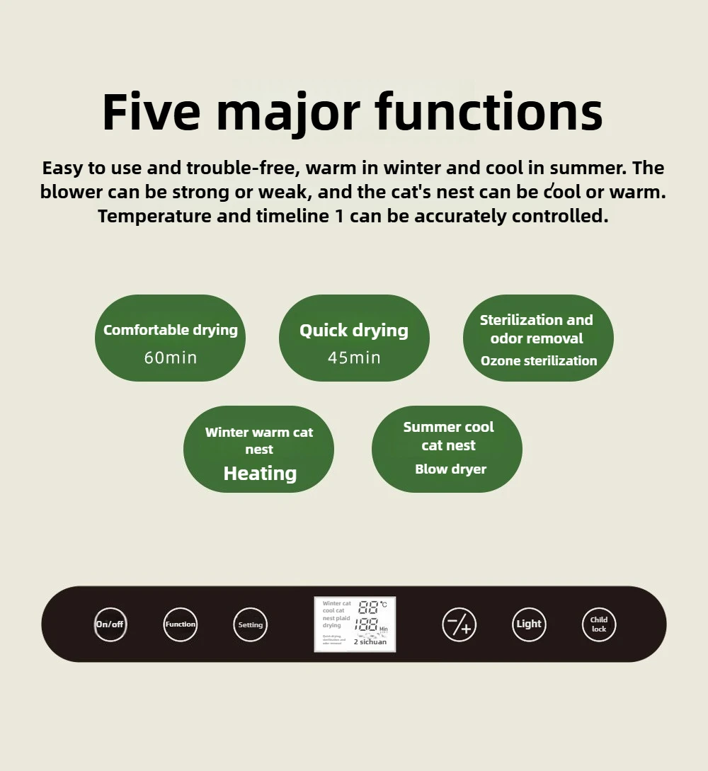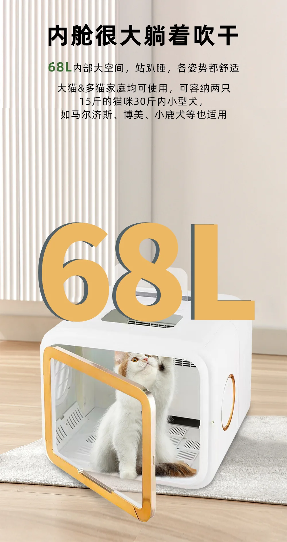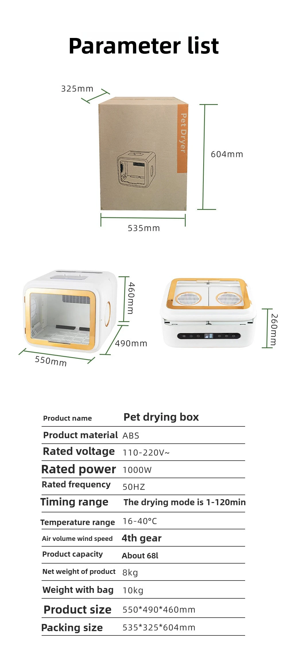 Caja de secado plegable para mascotas, casa para gatos, hogar, 68L, baño y secado para perros y gatos, secador de pelo automático, secador plegable para mascotas, suministros para perros