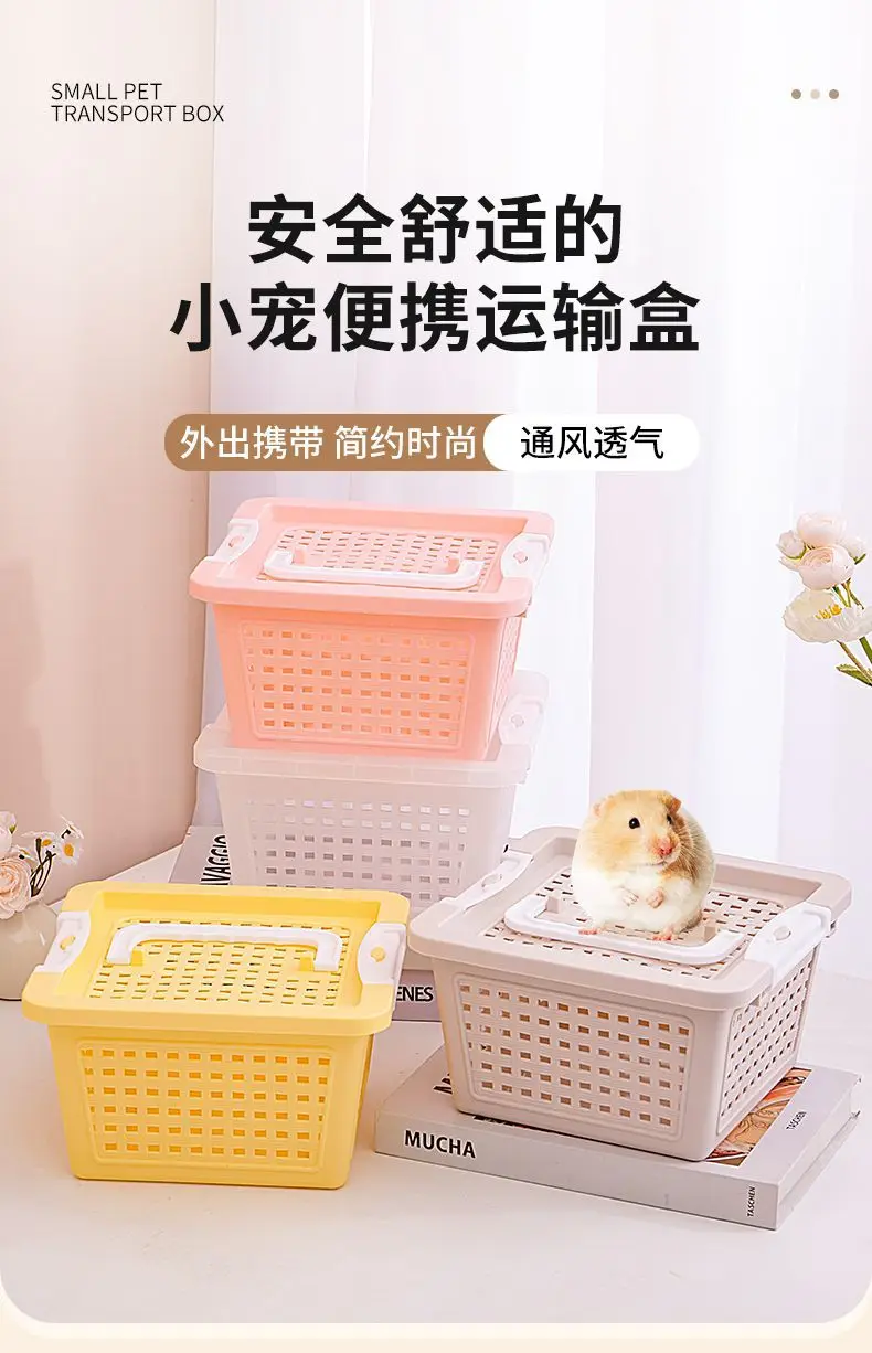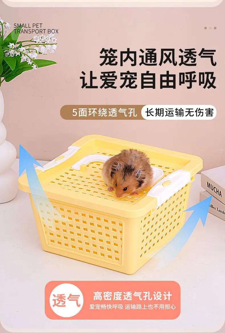 Caja de transporte portátil para salir de hámster, jaula portátil para hámster, caja de ratán porosa transpirable, resistencia a la presión, engrosamiento