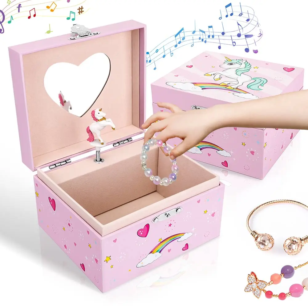 Una muñeca de sirena o unicornio bellamente diseñada dentro de la caja de música gira lentamente con la melodiosa melodía, creando un mundo lleno de fantasía para los niños.