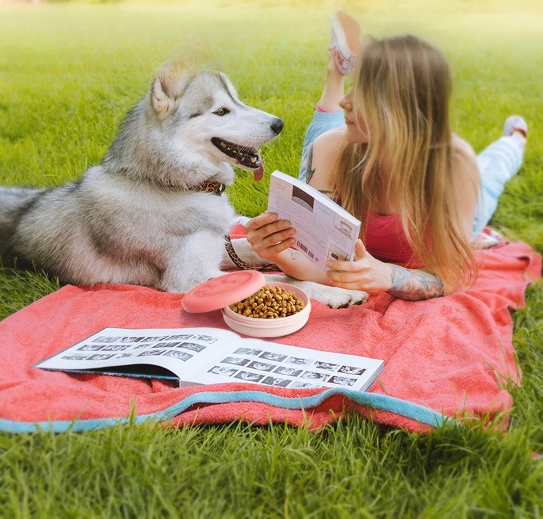 Cajas portátiles de almacenamiento de alimentos para perros al aire libre, suministros para comederos para mascotas, cuenco de plástico de viaje multifuncional para gatos, suministros de alimentación para cachorros y gatitos