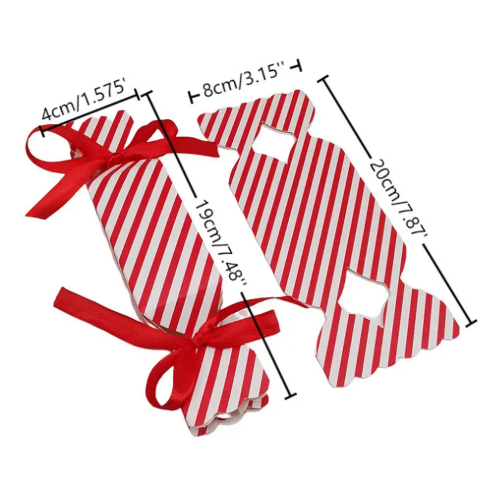 4.Fácil preparación: con cintas incorporadas que son fáciles de arreglar, estas cajas navideñas con forma de caramelo vienen con una exquisita cinta de embalaje, lo que garantiza una presentación práctica pero encantadora.