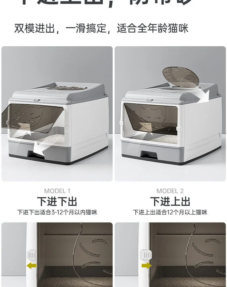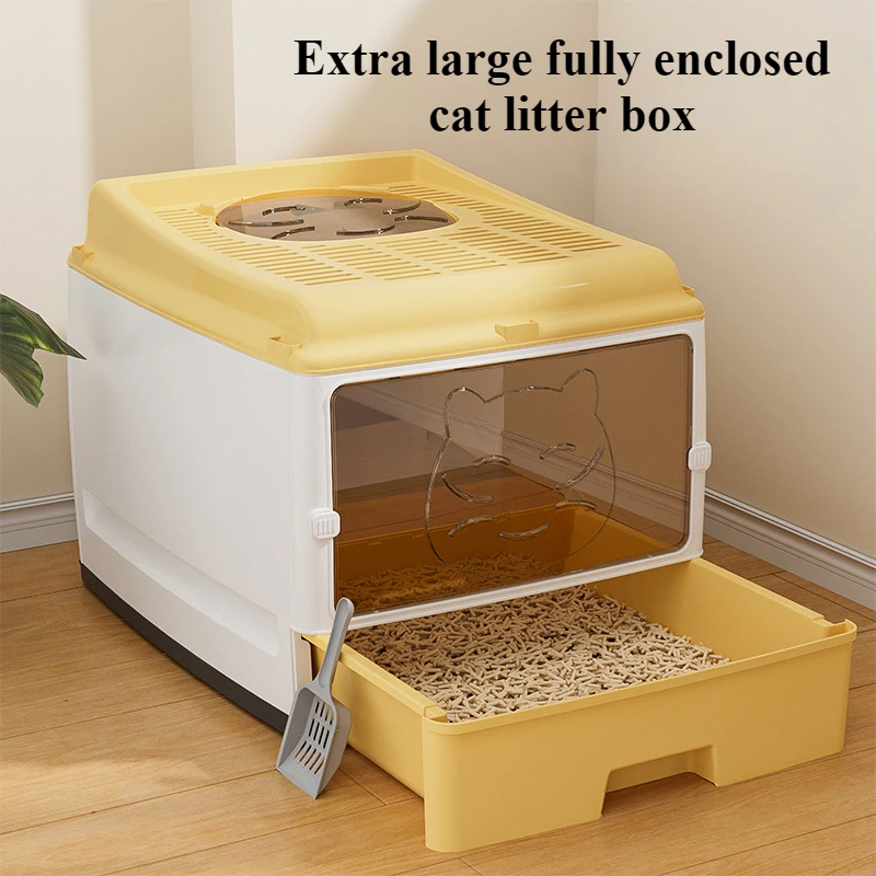 Cajón de arena para gatos totalmente cerrado de gran tamaño, doble puerta mejorada, inodoro para gatos, gran espacio, sin preocupaciones, a prueba de olores y fugas laterales