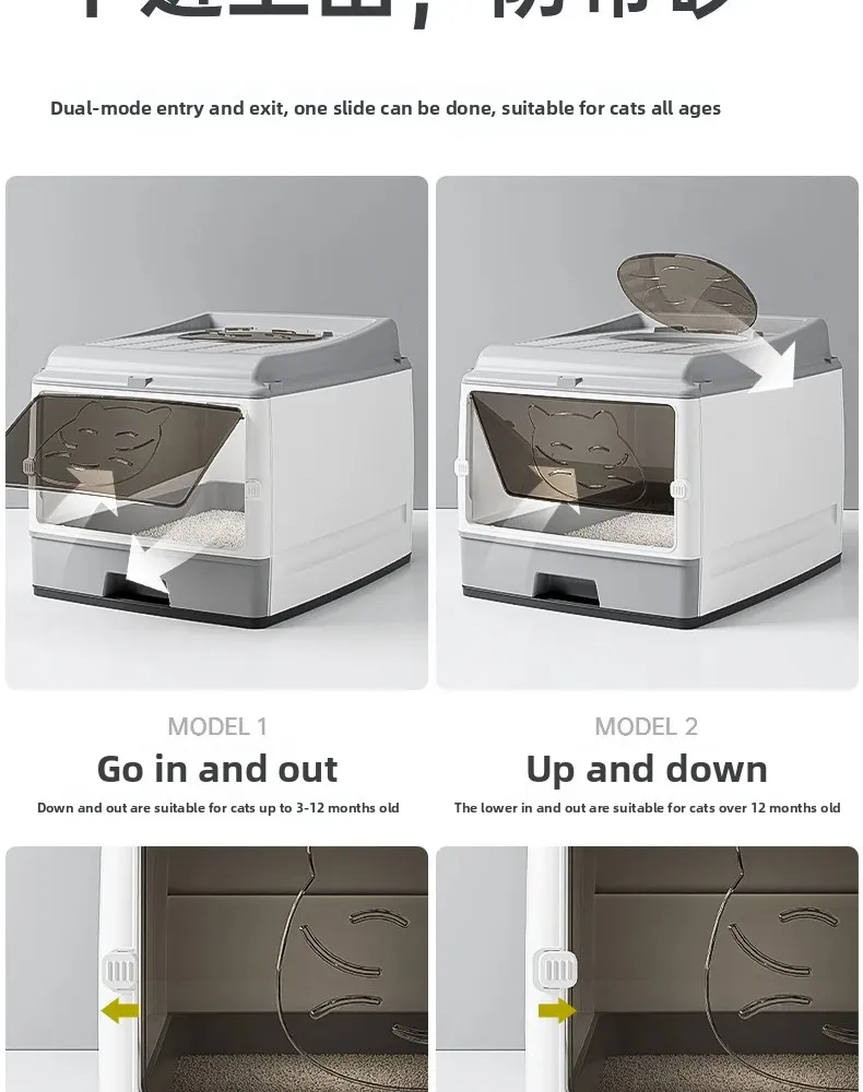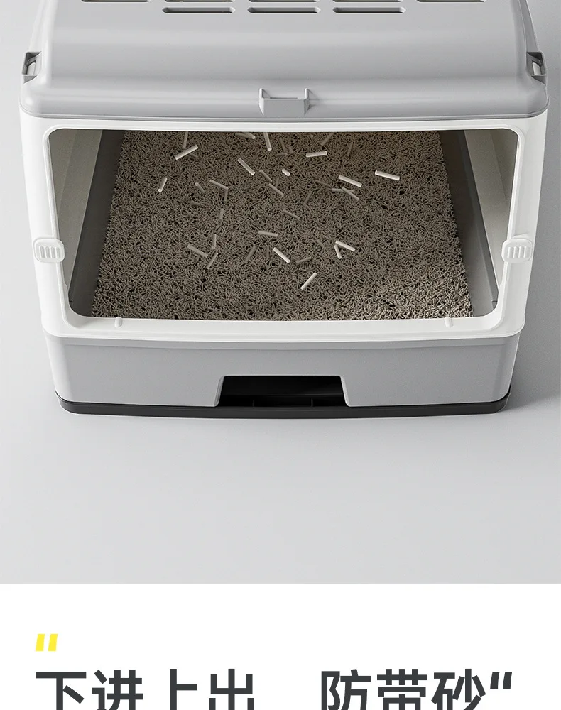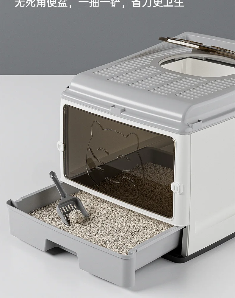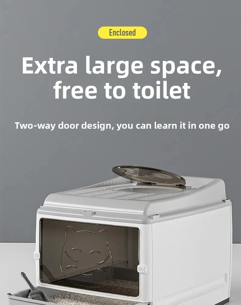 Cajón de arena para gatos totalmente cerrado de gran tamaño, doble puerta mejorada, inodoro para gatos, gran espacio, sin preocupaciones, a prueba de olores y fugas laterales