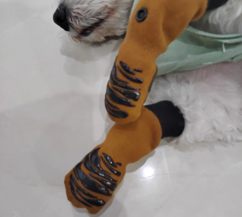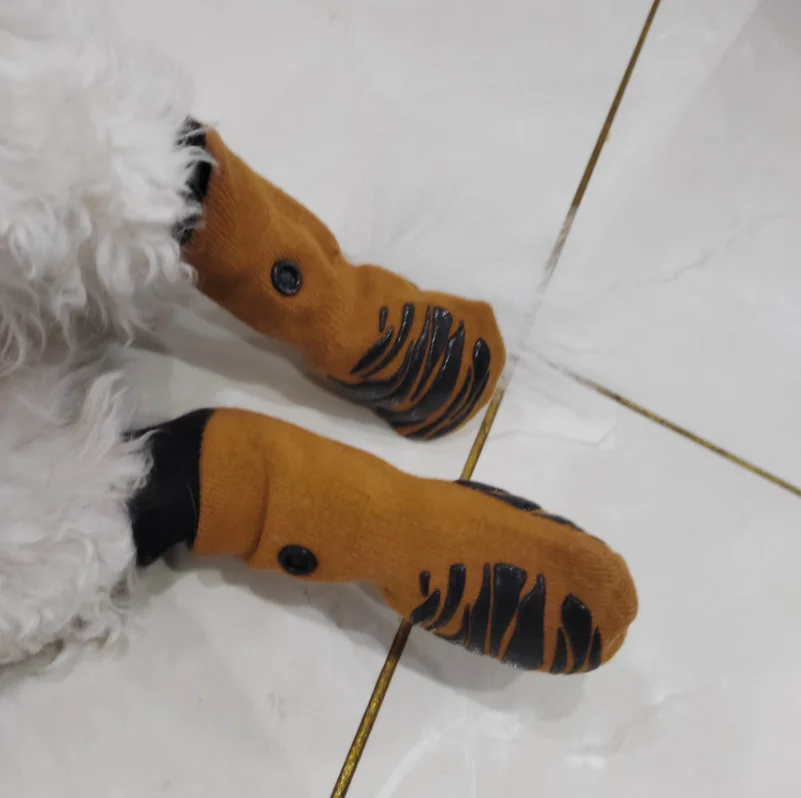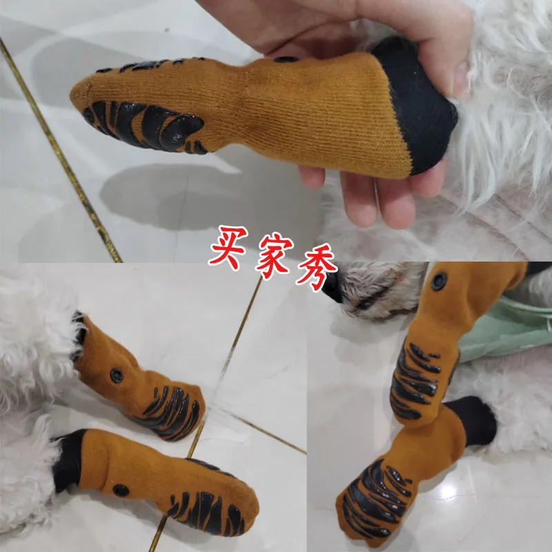 Calcetines antideslizantes de goma para suelos de madera dura para perros, Protector de patas, Control de tracción, ropa interior, botines tejidos para mascotas con pinzas, 4 Uds.