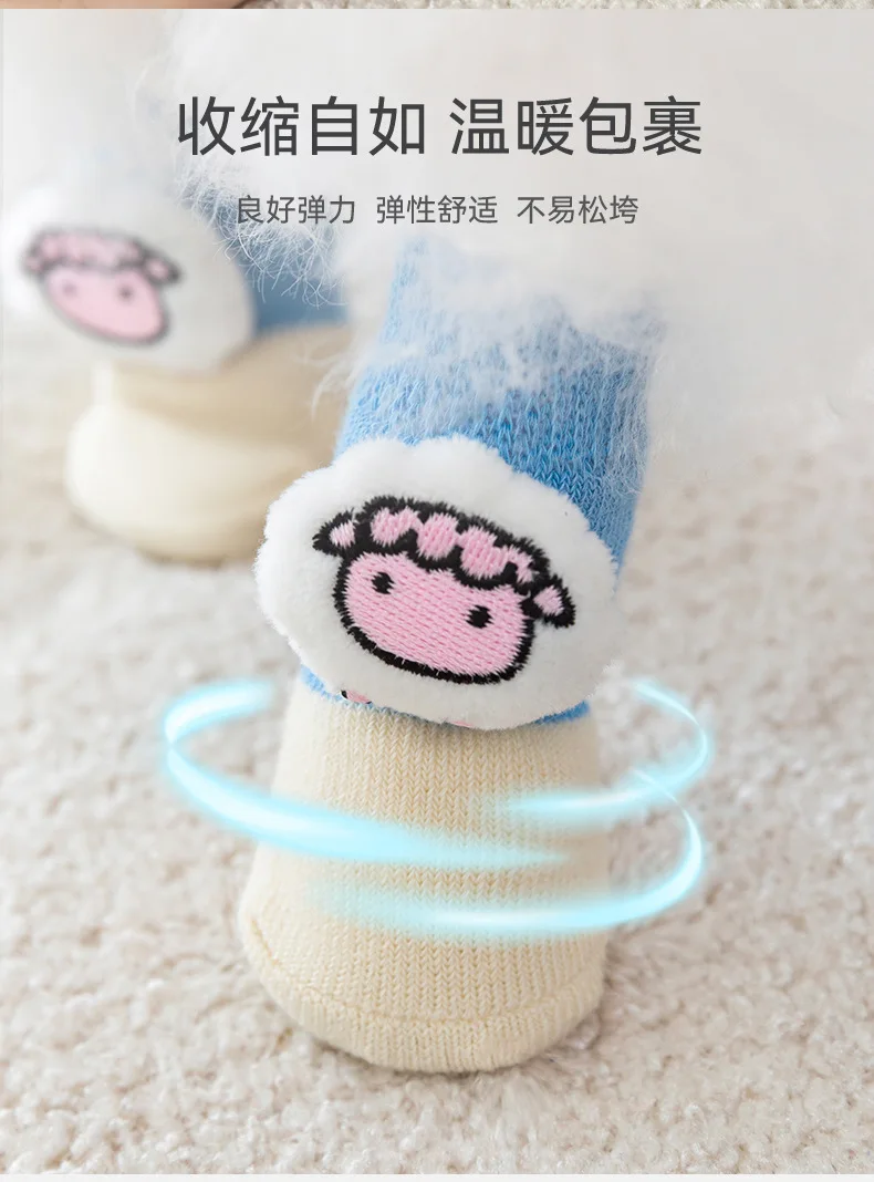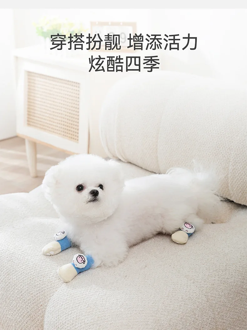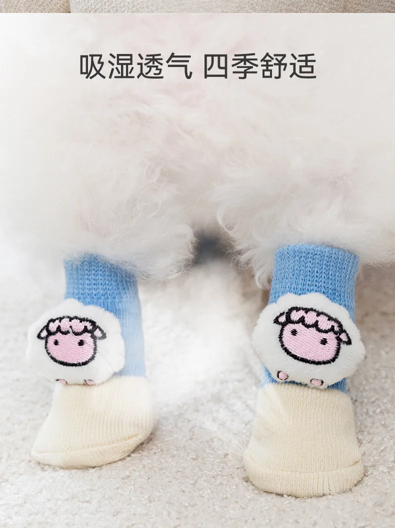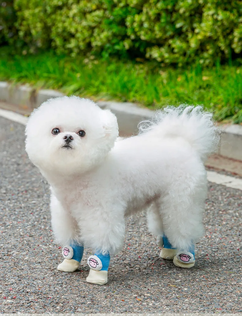 Calcetines antideslizantes para mascotas, juego de cubrezapatos para perros de peluche, 4 calcetines para perros, calcetines para cachorros, zapatos para perros pequeños