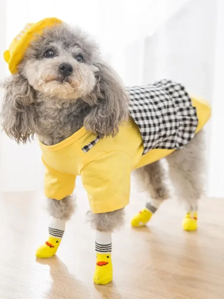 Calcetines antideslizantes para mascotas, zapatos con estampado de gatos y cachorros, Protector de patas, productos para razas pequeñas, perros York y Chihuahua, 4 piezas