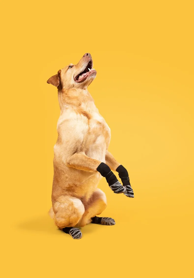 Calcetines bien hechos, frenos en los calcetines en ambos lados incluyen velcro para mantener los calcetines en las patas de los perros.