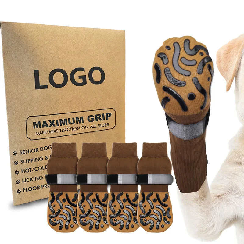 Calcetines antideslizantes de primera calidad para pisos de madera, evitan que se lamen, resbalen y protegen las patas del perro: botines para perros extra gruesos con pinzas para perros pequeños, medianos y grandes