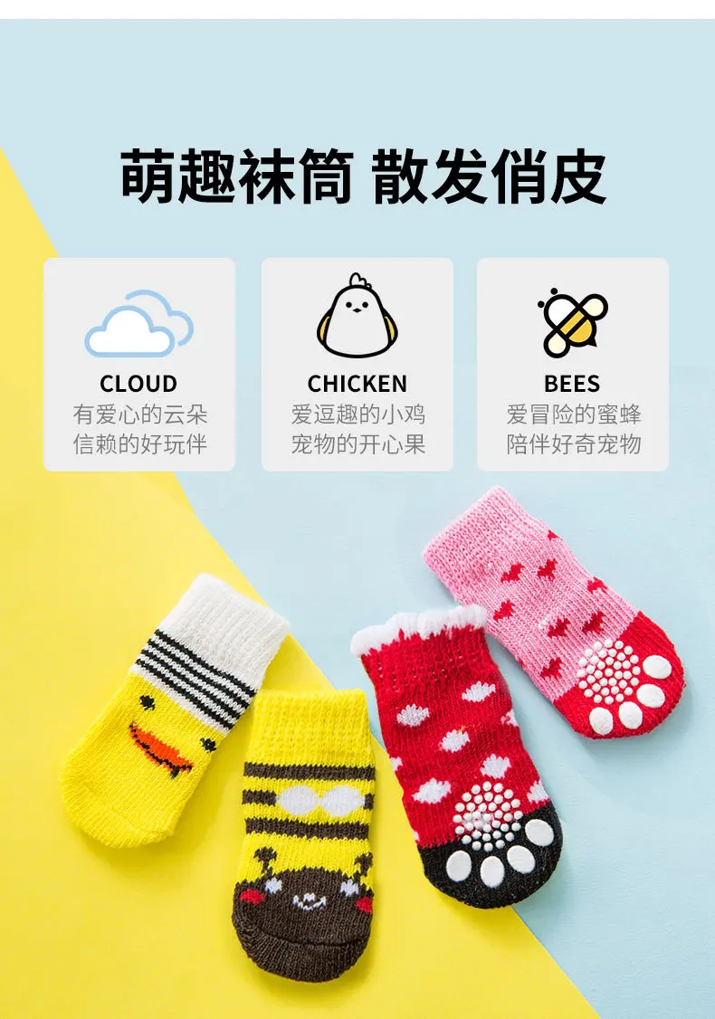 4 Uds. Calcetines bonitos para perros con estampado antideslizante, zapatos para cachorros, productos protectores de patas para razas pequeñas, perros Spitz York Chihuahua
