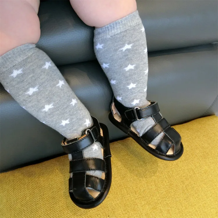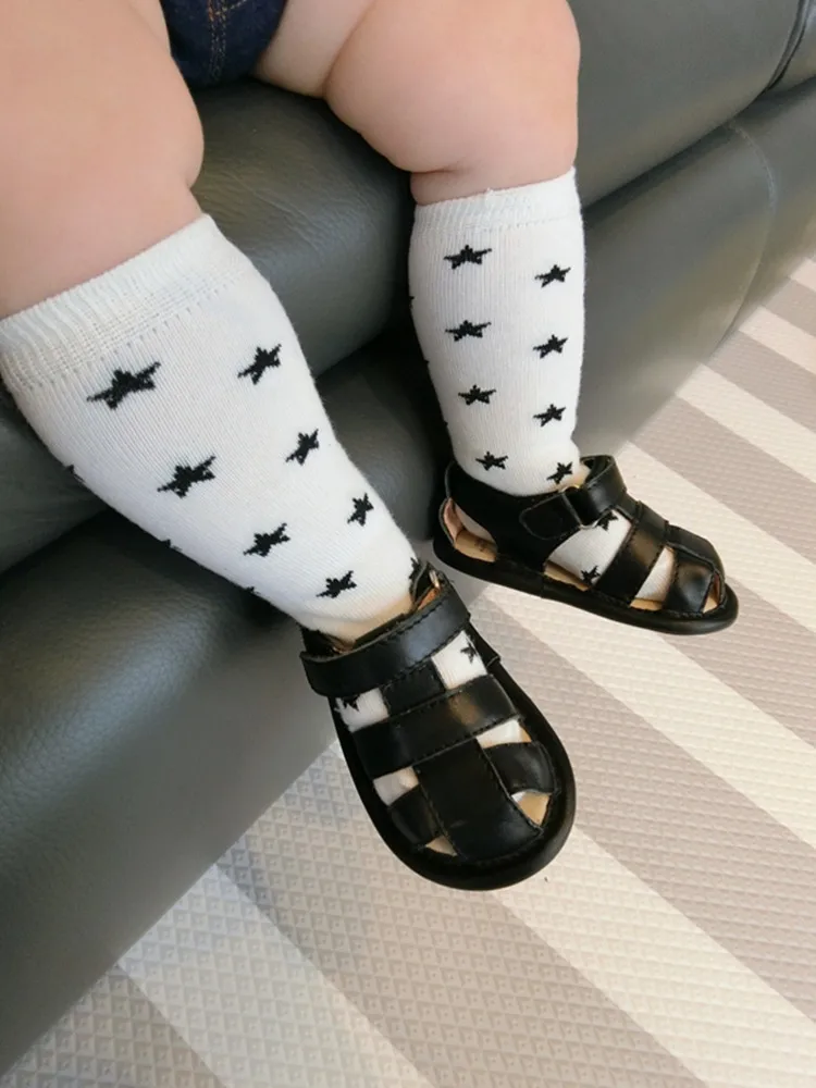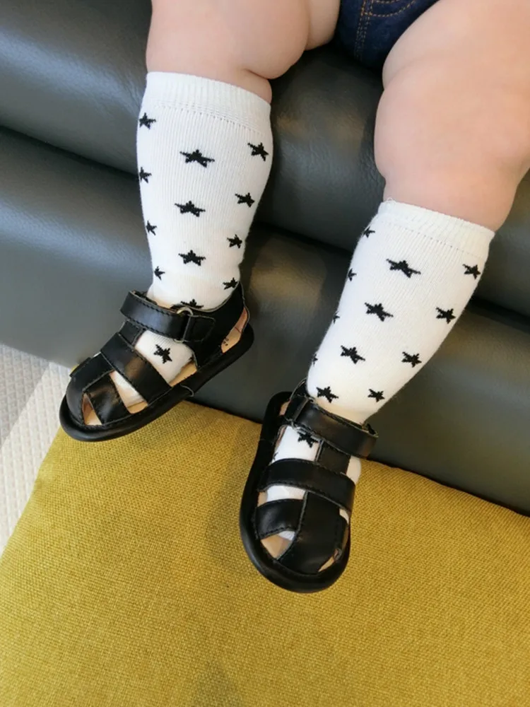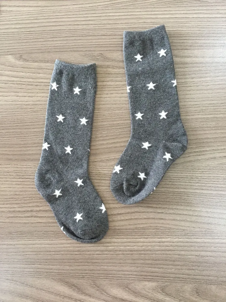 Calcetines largos hasta la rodilla de algodón para bebé, medias de tubo, color blanco, bonito, color gris