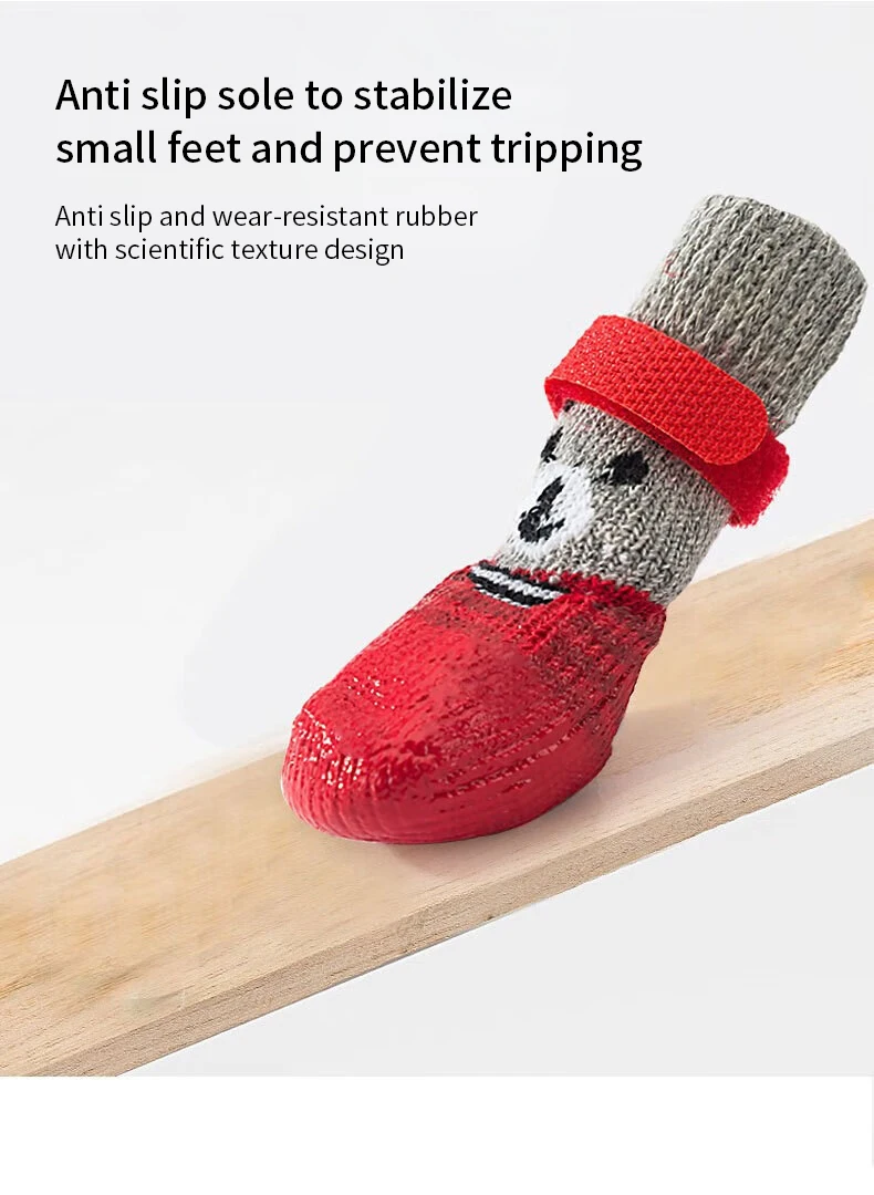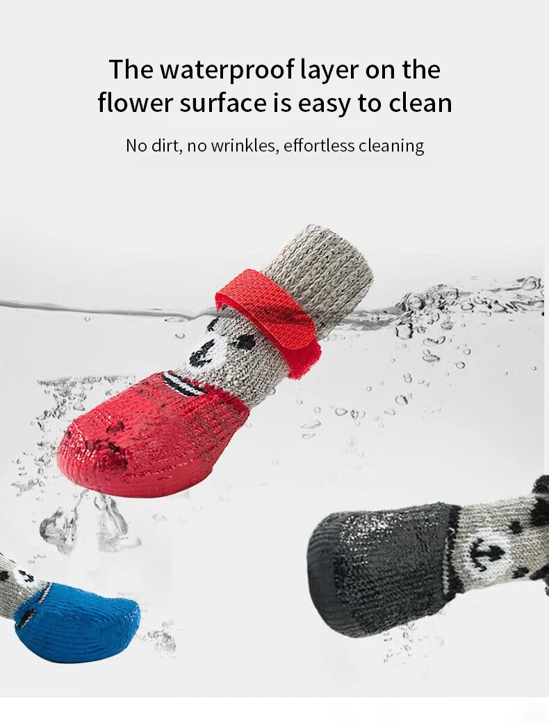 4 Uds. Calcetines de peluche para cachorros, zapatos impermeables para gatos, cubierta para pies antiarañazos, calcetines antisuciedad para mascotas, calcetines tejidos para perros pequeños y gatos