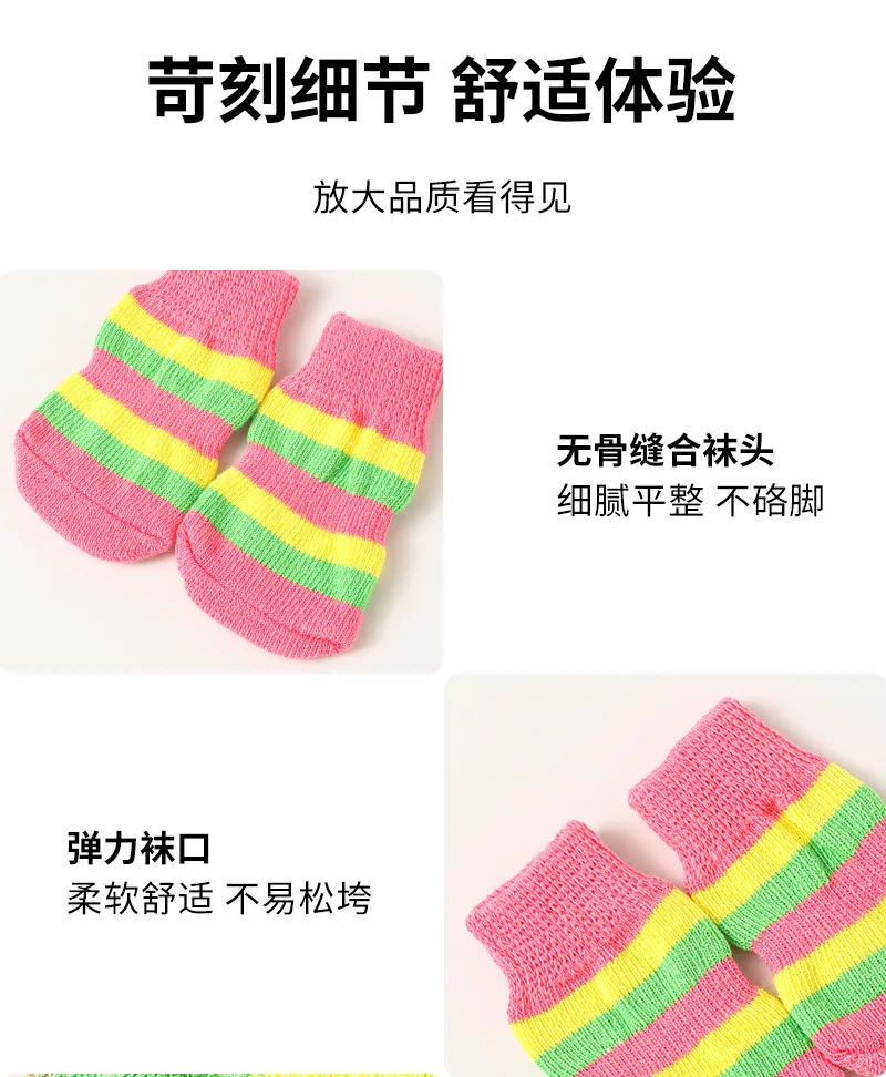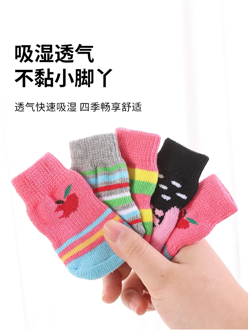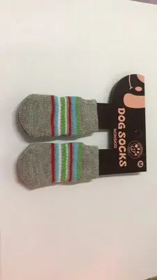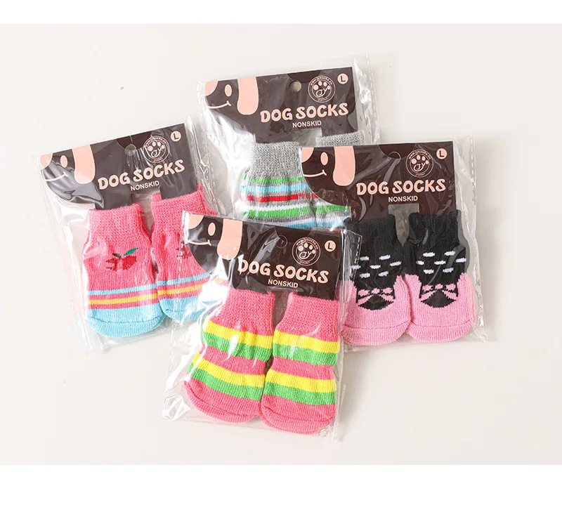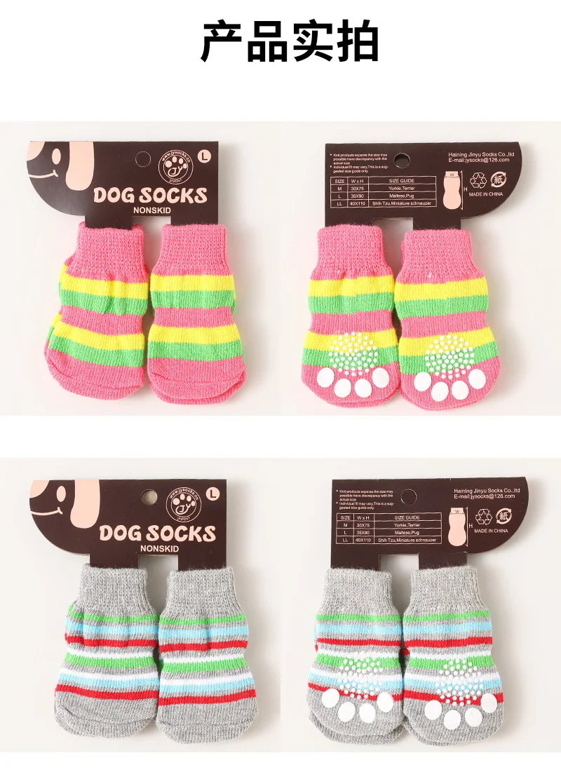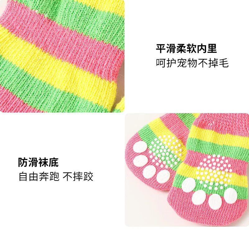 Calcetines a rayas para mascotas, cubiertas para pies de gato y perro, antiarañazos y antideslizantes, Calcetines antideslizantes de invierno, cuatro pares de zapatos para perros
