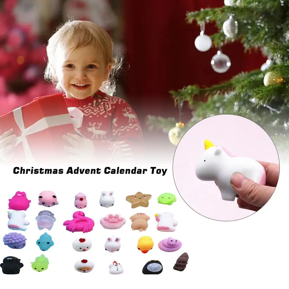 Lista de embalaje:1 * Calendario de Adviento de Navidad de juguete (contiene 24 juguetes para apretar)