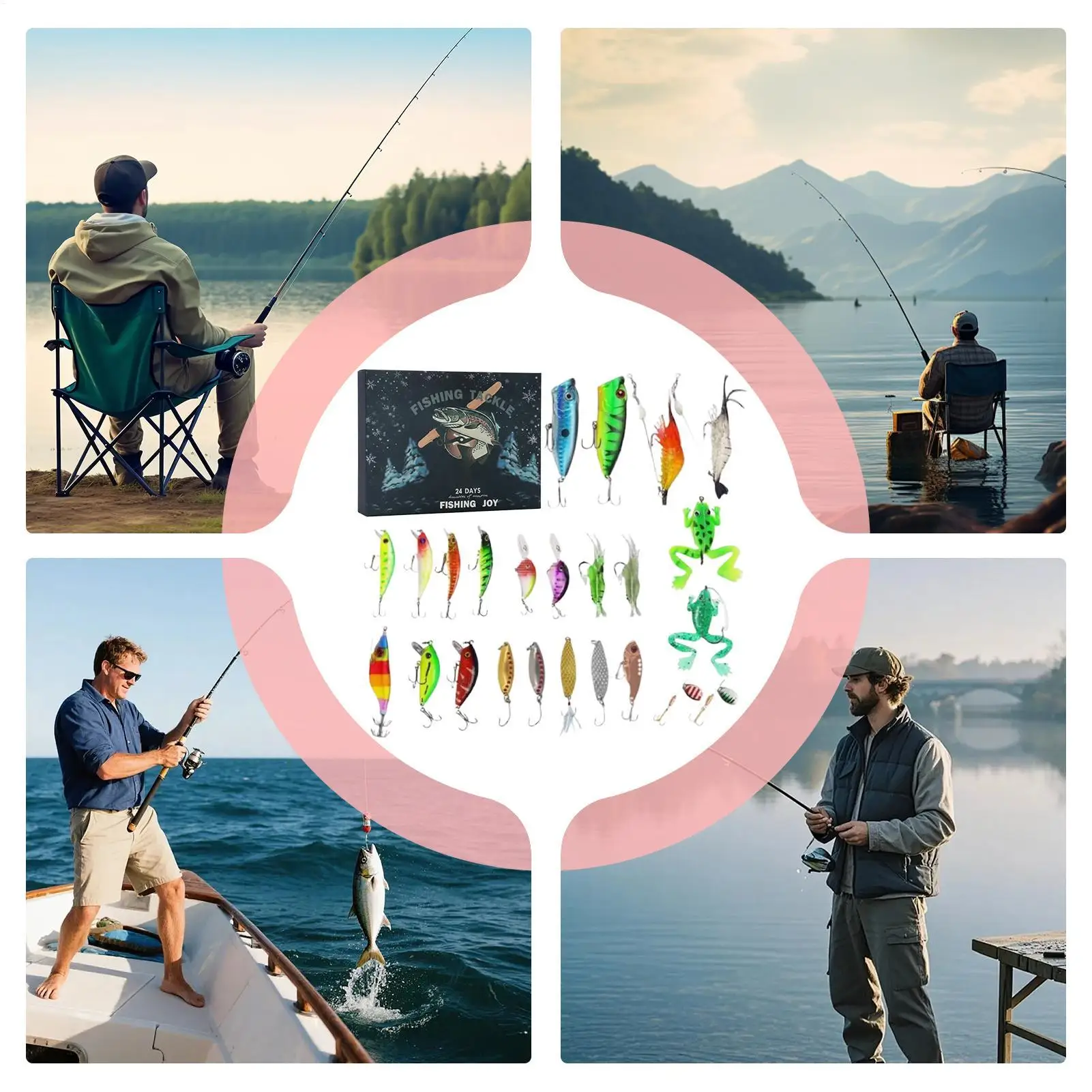 Especificaciones:Nombre del producto: Calendario del juego de señuelos de pesca 2025