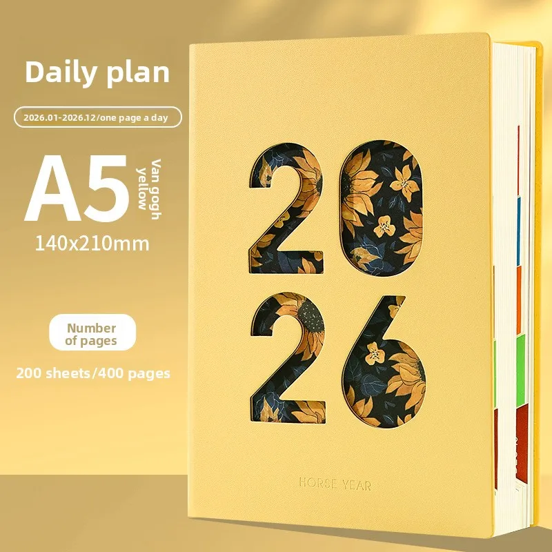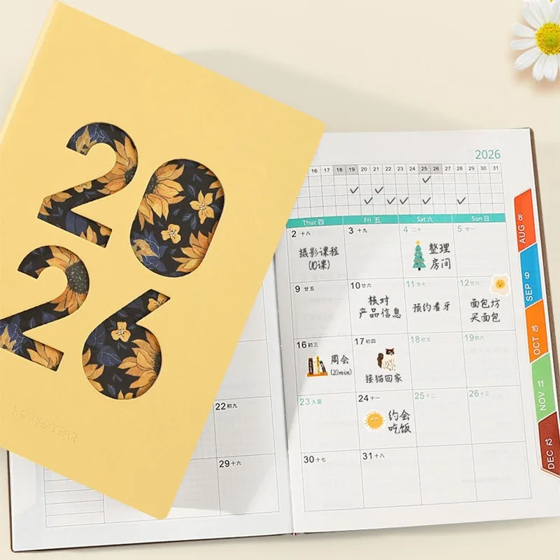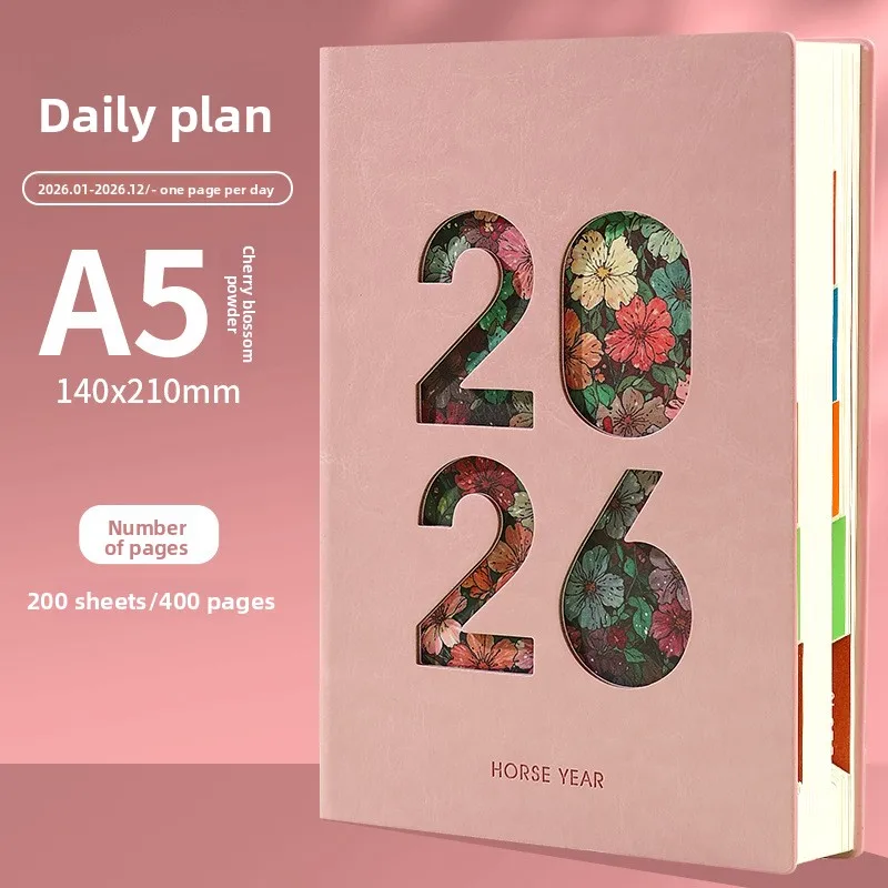 Calendario y organizador diario 2026 Nuevo planificador A5 con cubierta hueca y cuaderno de páginas de índice