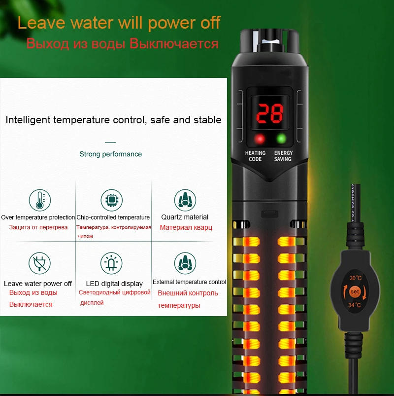 1. Termostato preciso, 20-34 °C se puede ajustar libremente, regulador en el exterior del tanque, conveniente y práctico para controlar la temperatura