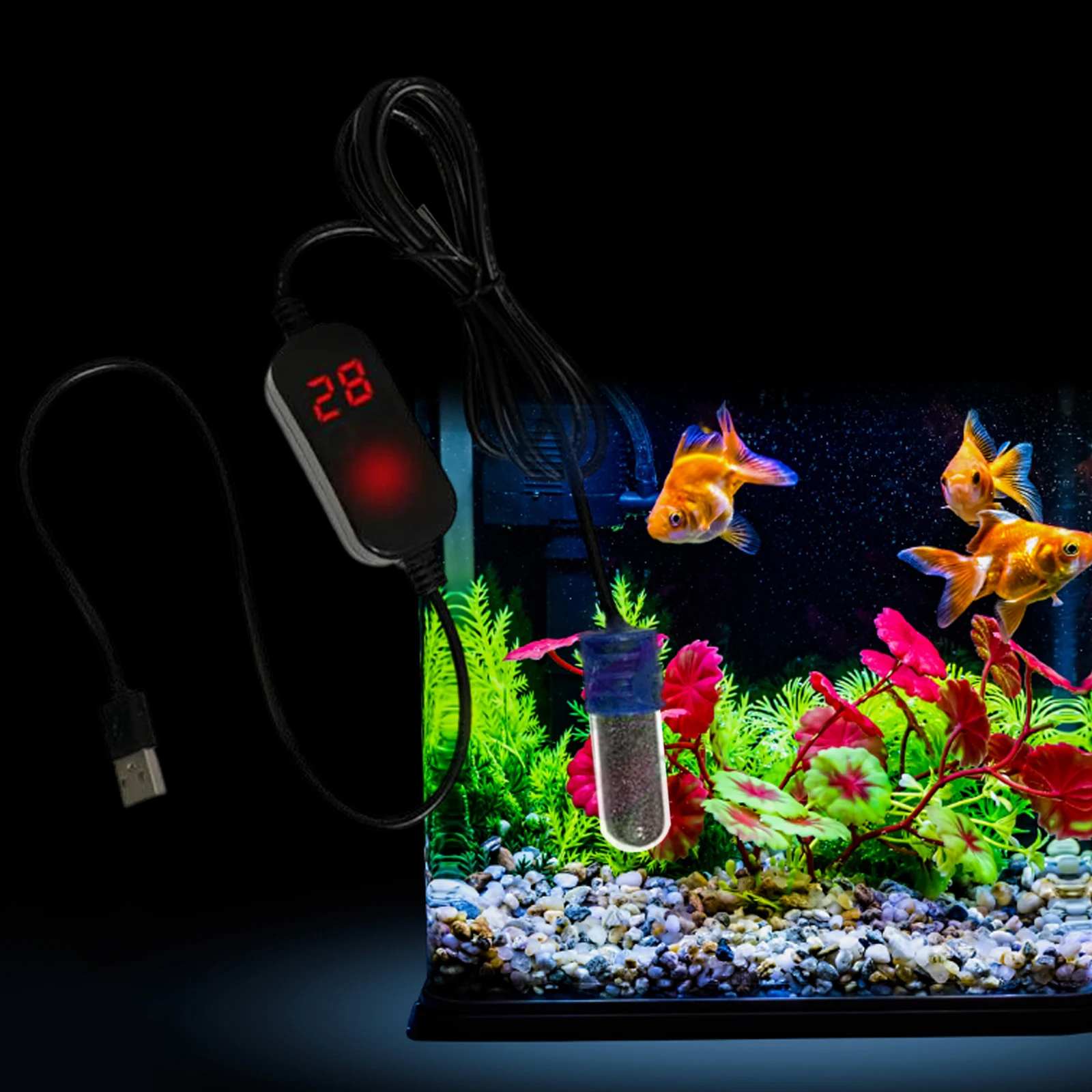Calentador de pecera pequeña: especialmente diseñado para peceras pequeñas de menos de 1 galón, no ocupa el espacio de la pecera, alimentación USB, voltaje nominal DC 5V.