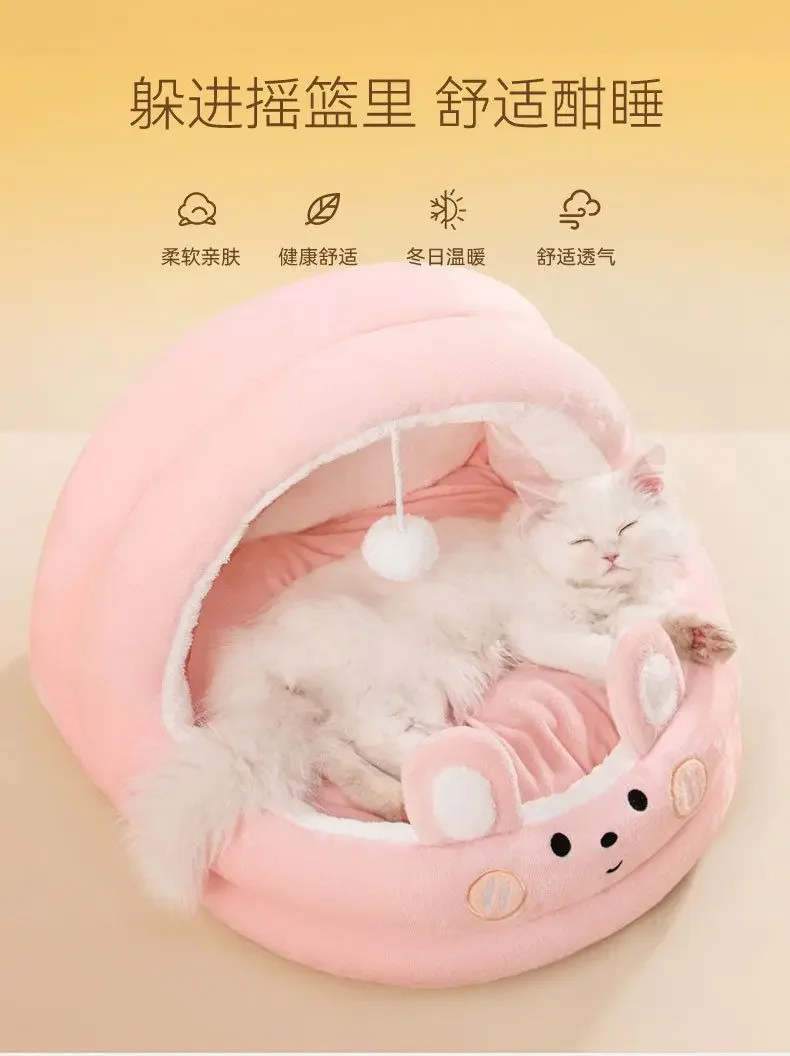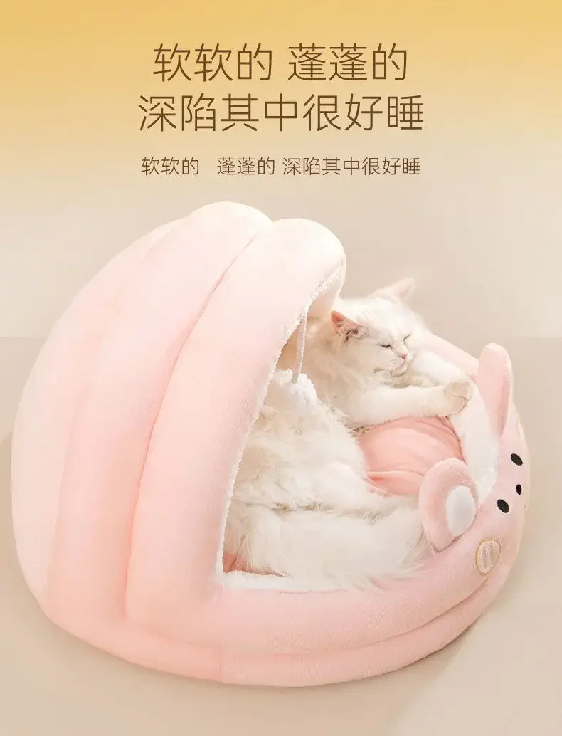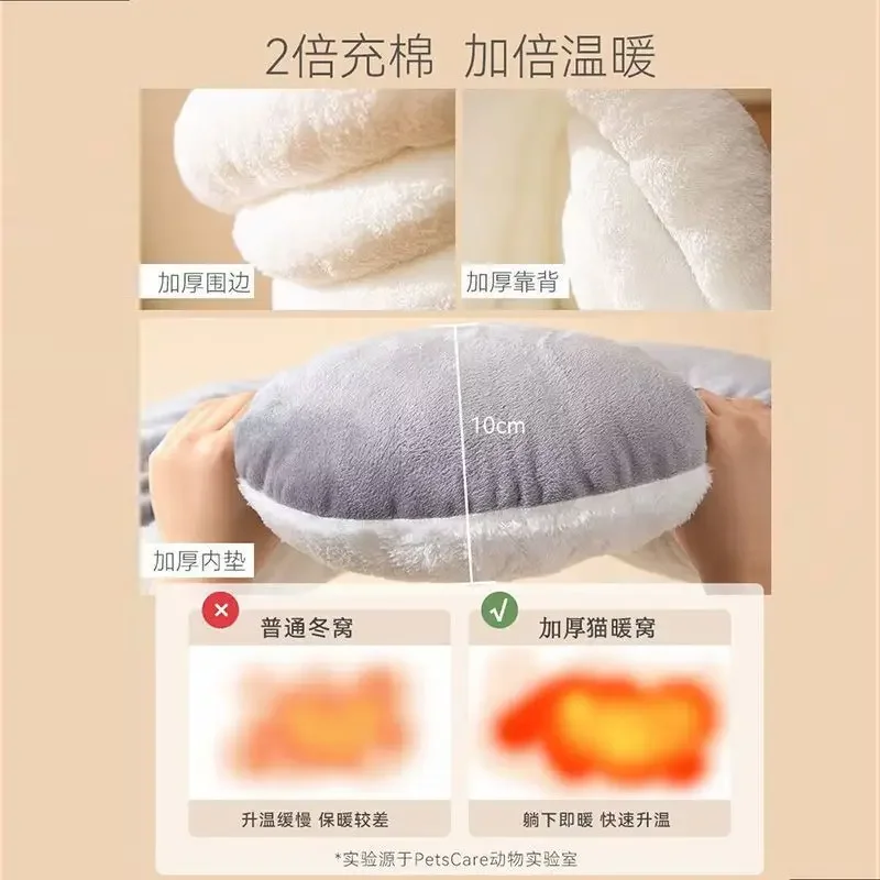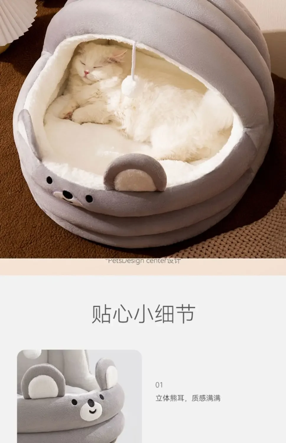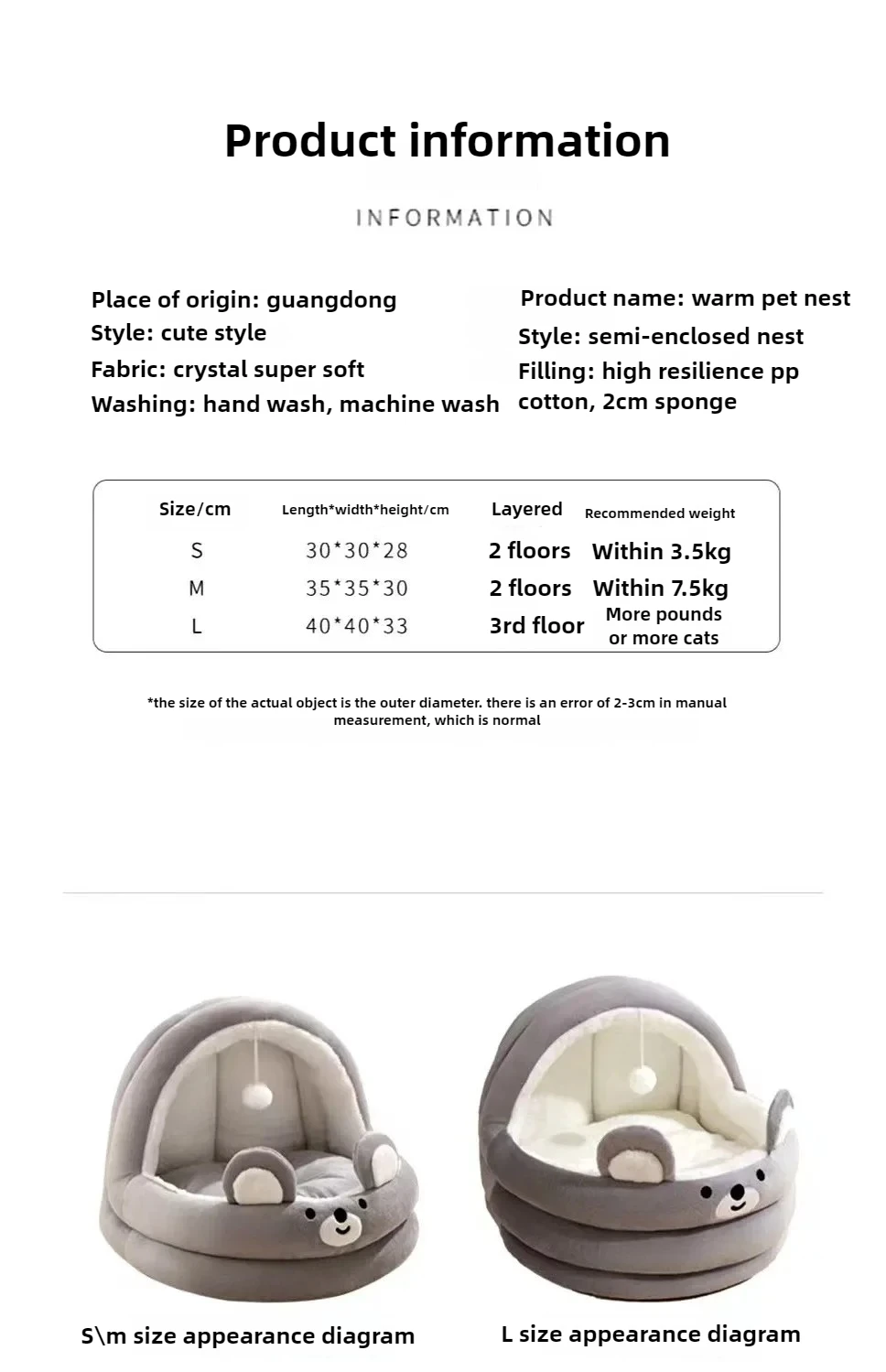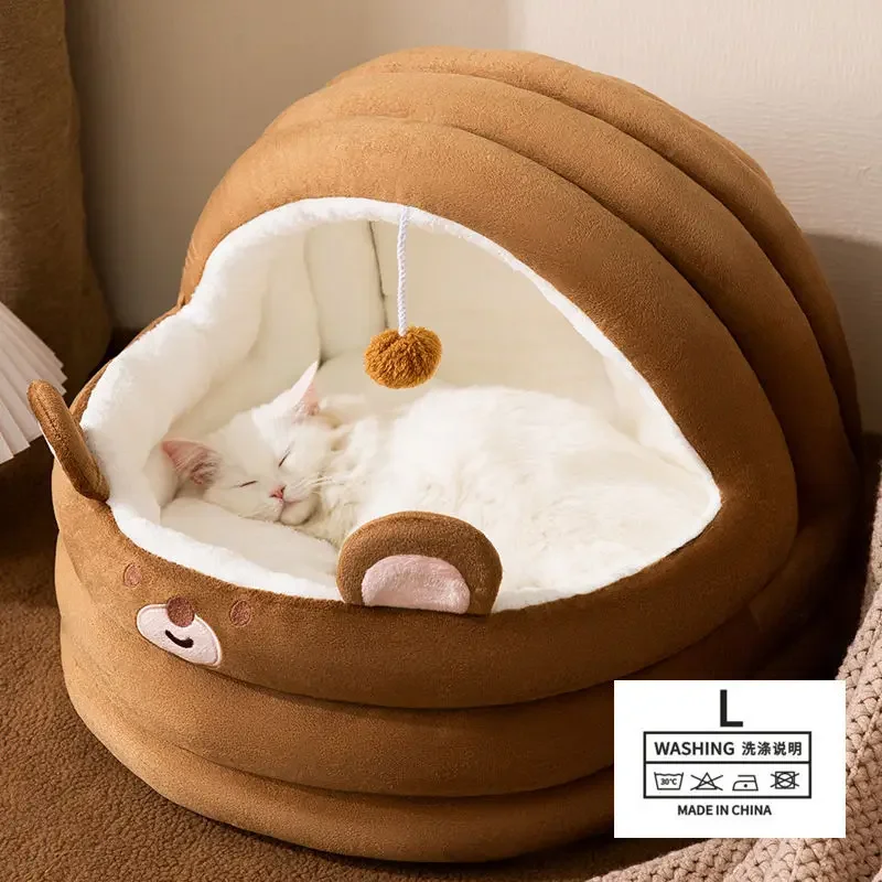 Cálido en invierno Casa para perros Cama para gatos Perros pequeños y medianos Perrera para gatos semicerrada extraíble y lavable