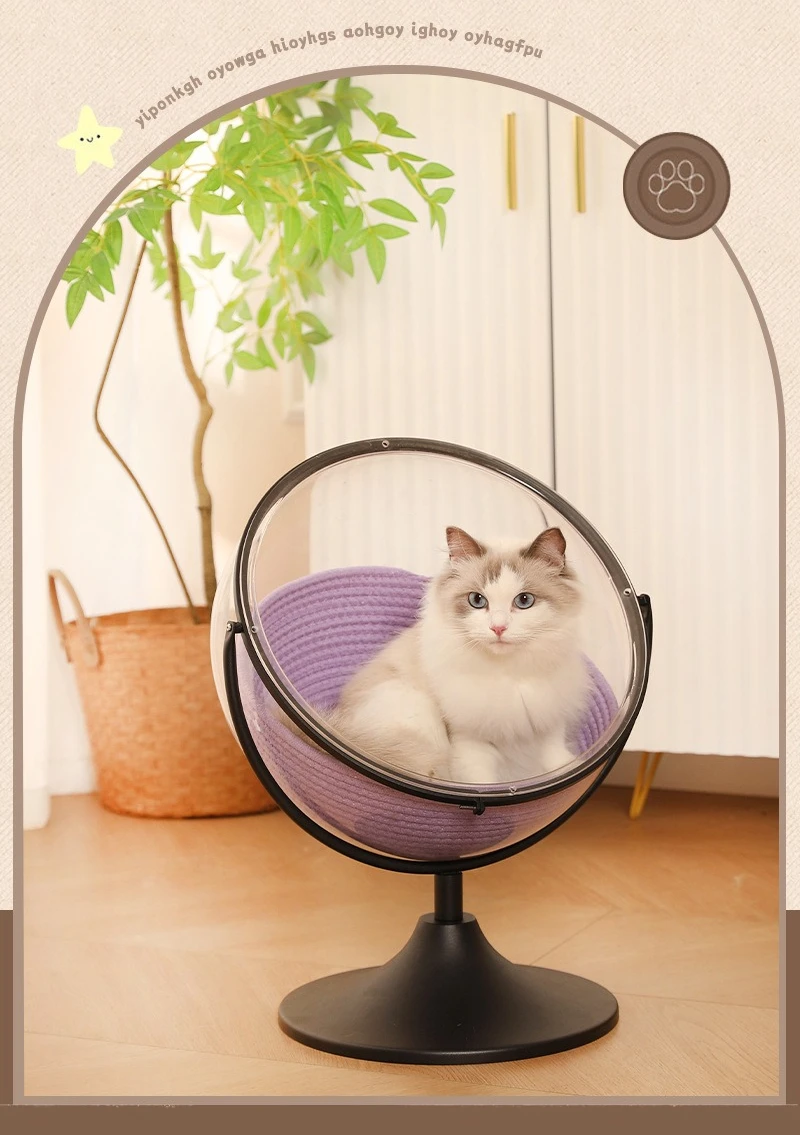 Cama acrílica para gatos, camas transparentes para gatos, cachorros, perros pequeños, gatitos, gatos, cama con globo, cápsula de gran espacio para mascotas, hamaca, muebles para casa