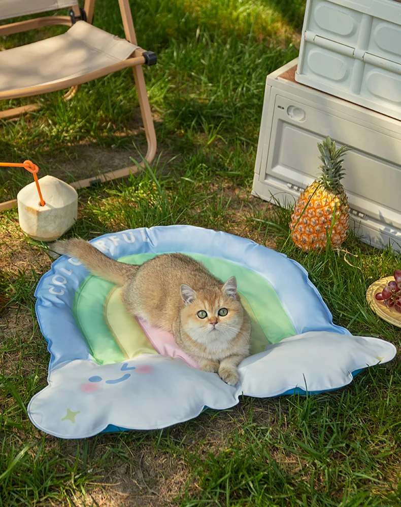 Cama con almohadilla de refrigeración para perros, gatos, cachorros, gatitos, manta fresca para mascotas, Material de seda de hielo suave para dormir en verano, rosa, azul, transpirable