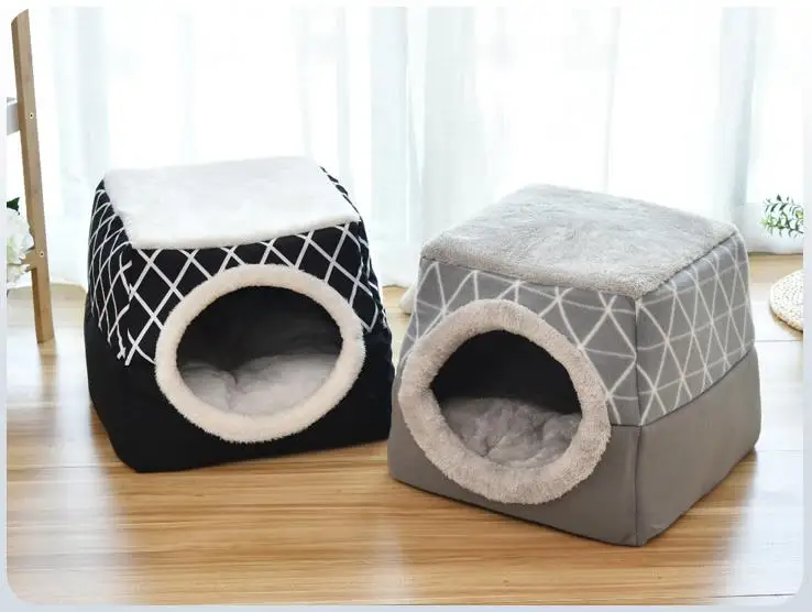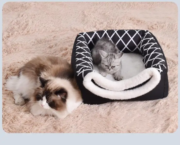 Cama para mascotas, casa para perros y gatos, perrera de felpa suave, cojín para cachorros, nido para perros pequeños, saco de dormir cálido para invierno, estera para cueva, suministros para mascotas