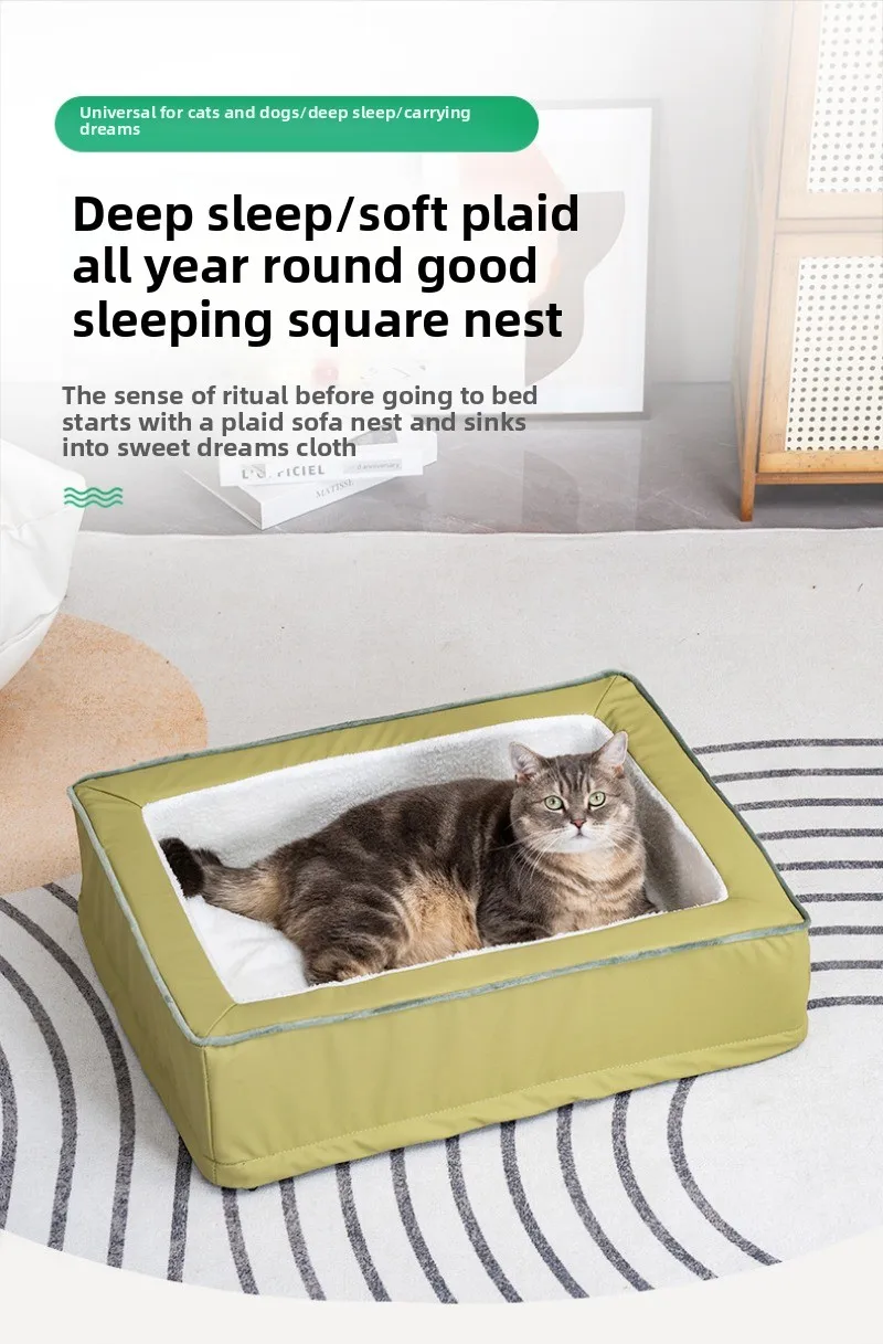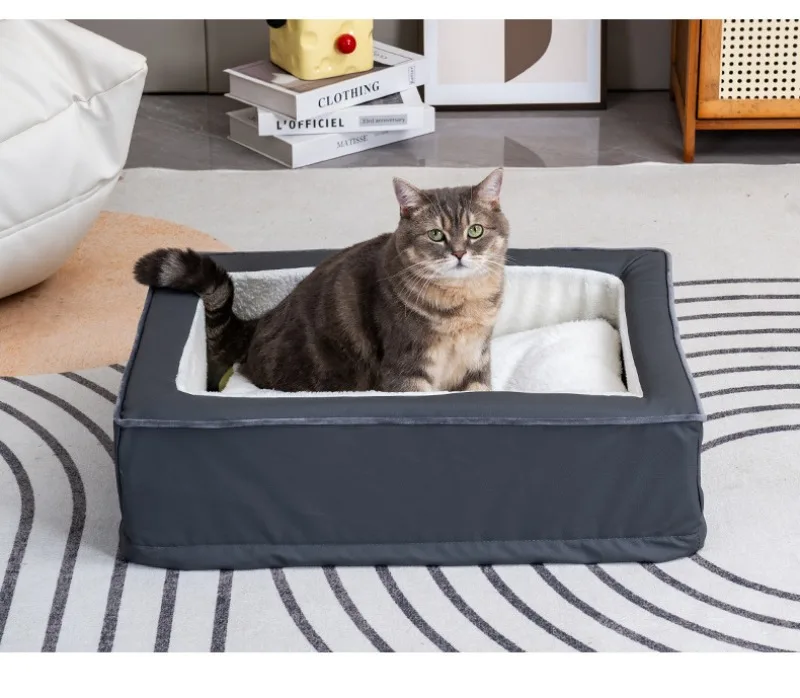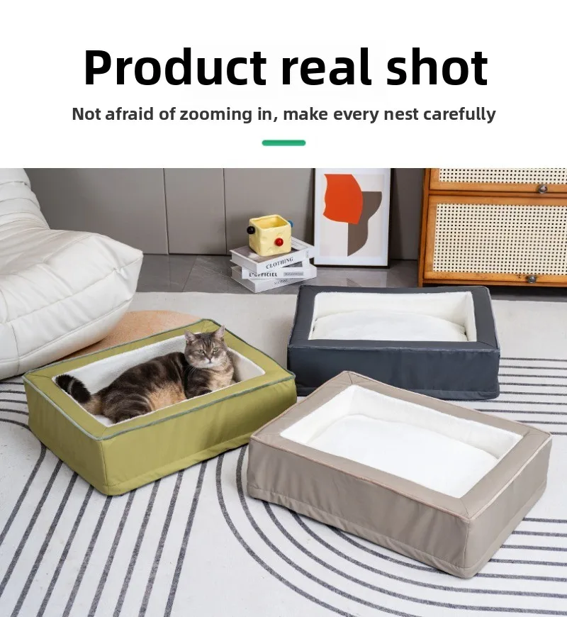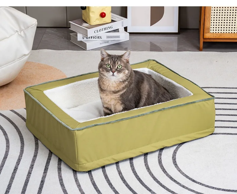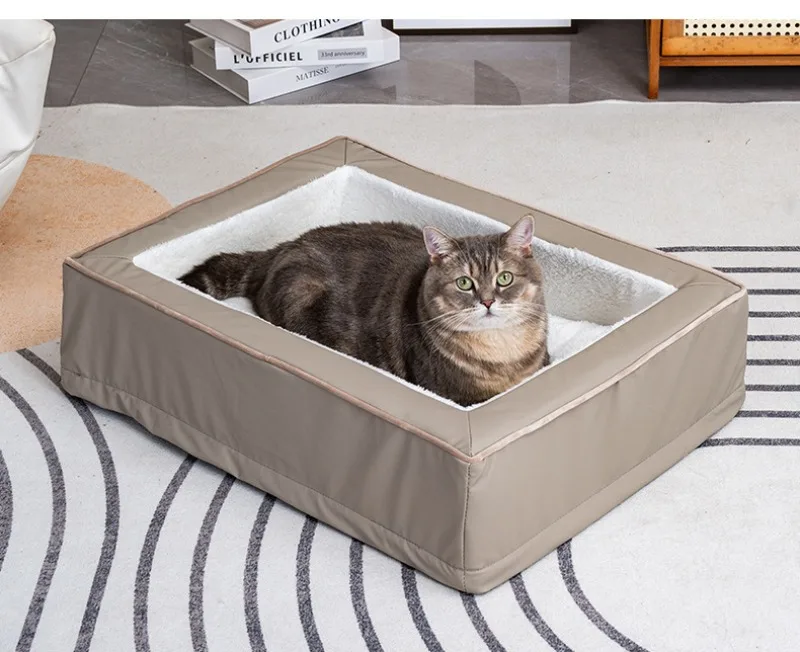 Cama cálida de invierno para gatos, cama de cuero impermeable antideslizante de forma cuadrada para perros y gatos, productos para suministros para mascotas, accesorios para el hogar