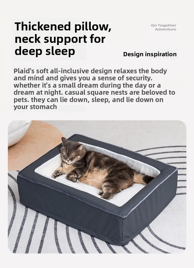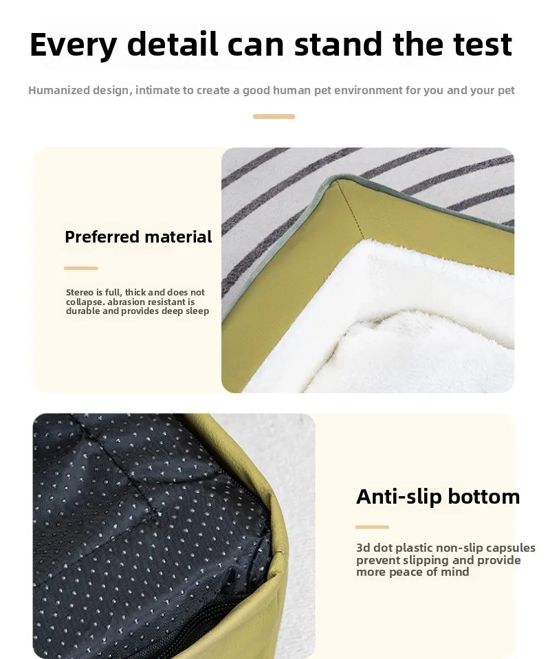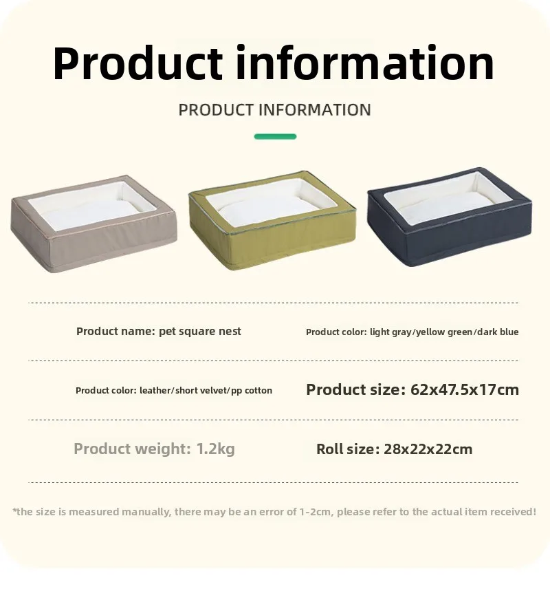 Descripción: Nido para gatos cálido de invierno, nido para mascotas impermeable antideslizante de cuero cuadradoCaracterísticas: 1.Protección de cuello de almohada engrosada para un sueño profundo 2.La comodidad circundante por todos lados es más relajante y llena de seguridad. 3.Gran espacio horizontal, grueso y lleno. 4.Material preferido, fuerte y duradero, fácil de cuidar, resistente al agarre y al desgaste. 5.Partículas antideslizantes de plástico con punta 3D inferior antideslizante para evitar el deslizamiento, más seguro