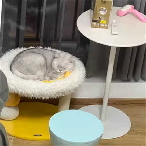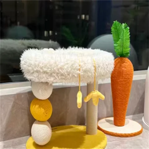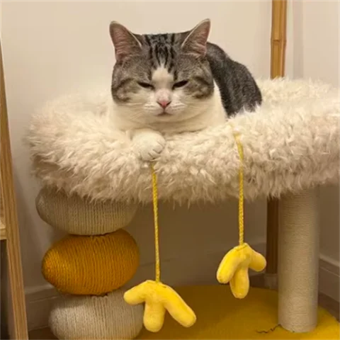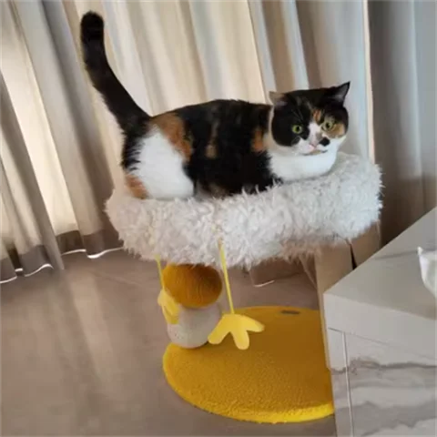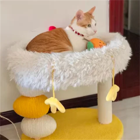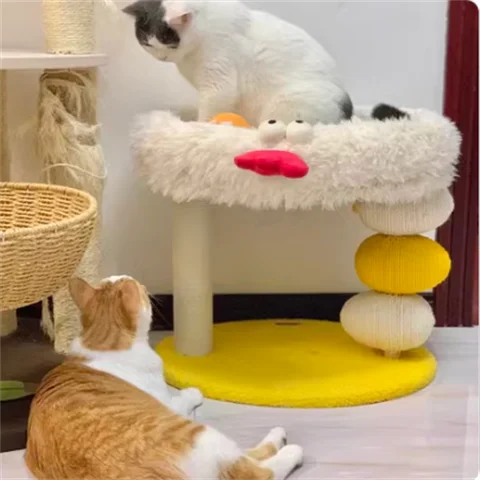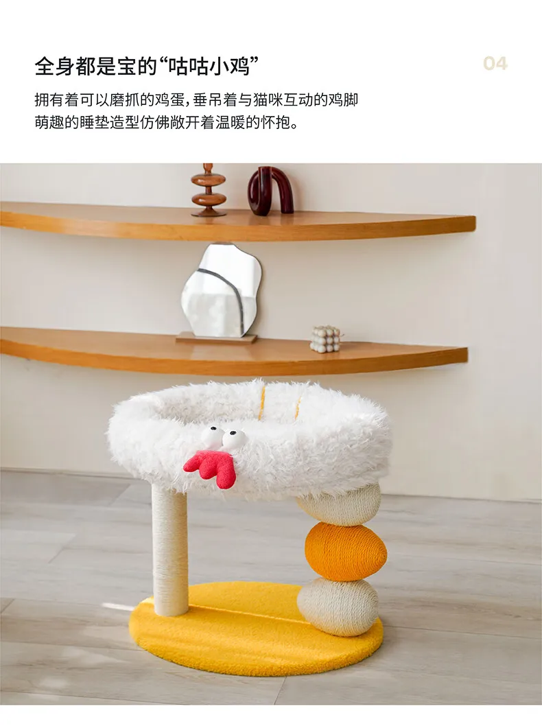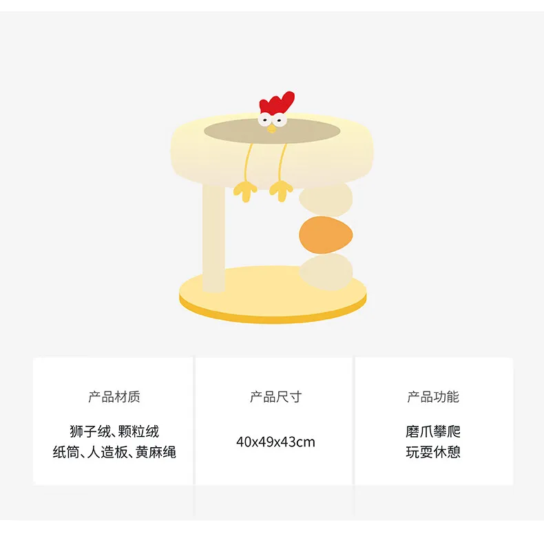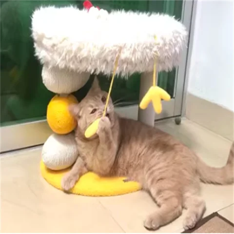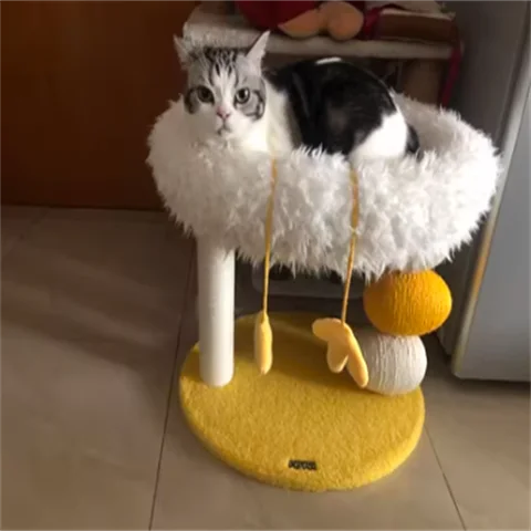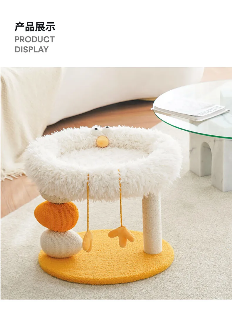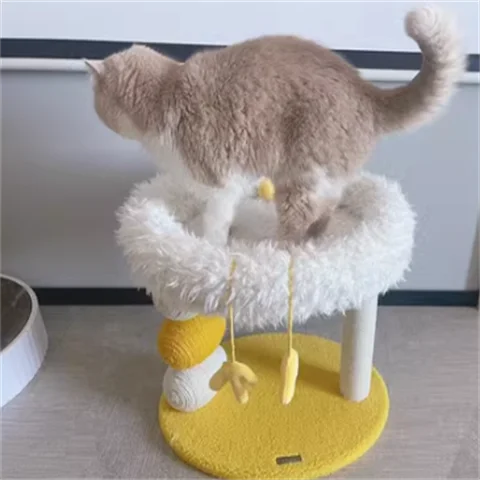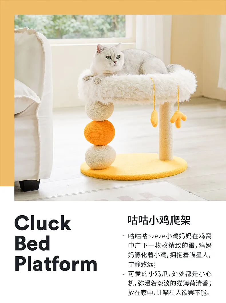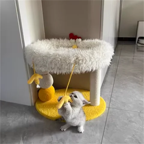 Cama compacta para gatos de dos pisos, plataforma para saltar para gatos, pollito amarillo, árbol para gatos con área de anidación, rascador para gatos y cama para gatos, combinación divertida