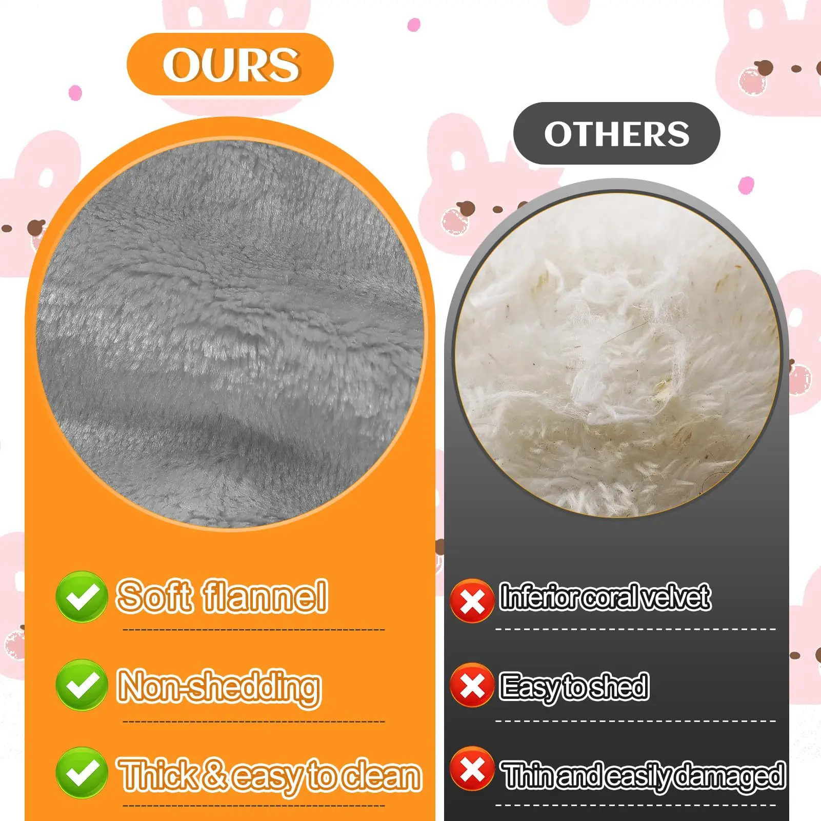 Suave y confiable:Nuestra cama tipo conejito está confeccionada con material de franela, suave al tacto, agradable para la piel y duradero.No suelta pelaje, lo que garantiza que no causará irritación ni molestias en la delicada piel de tu conejo.Puedes confiar en que tu conejo disfrutará de esta cama de abrazo.