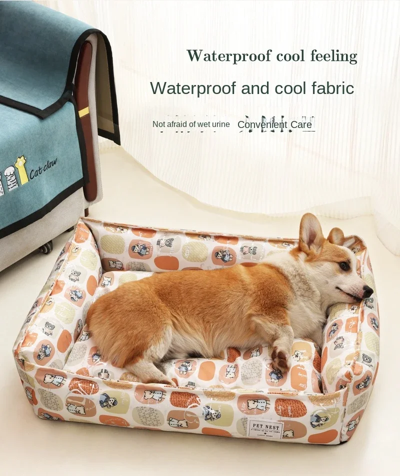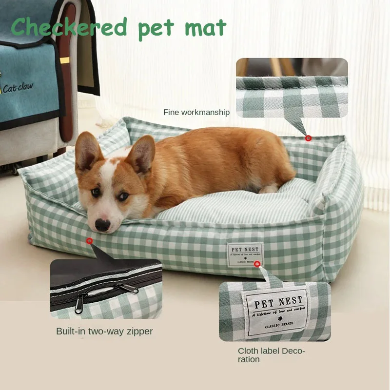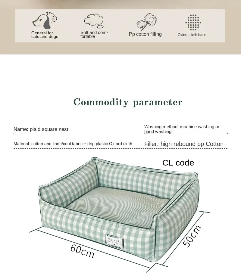 Cama cuadrada de celosía para mascotas, cojín extraíble, sofá para gatos medianos y pequeños, casa calmante para perros, accesorios para mascotas