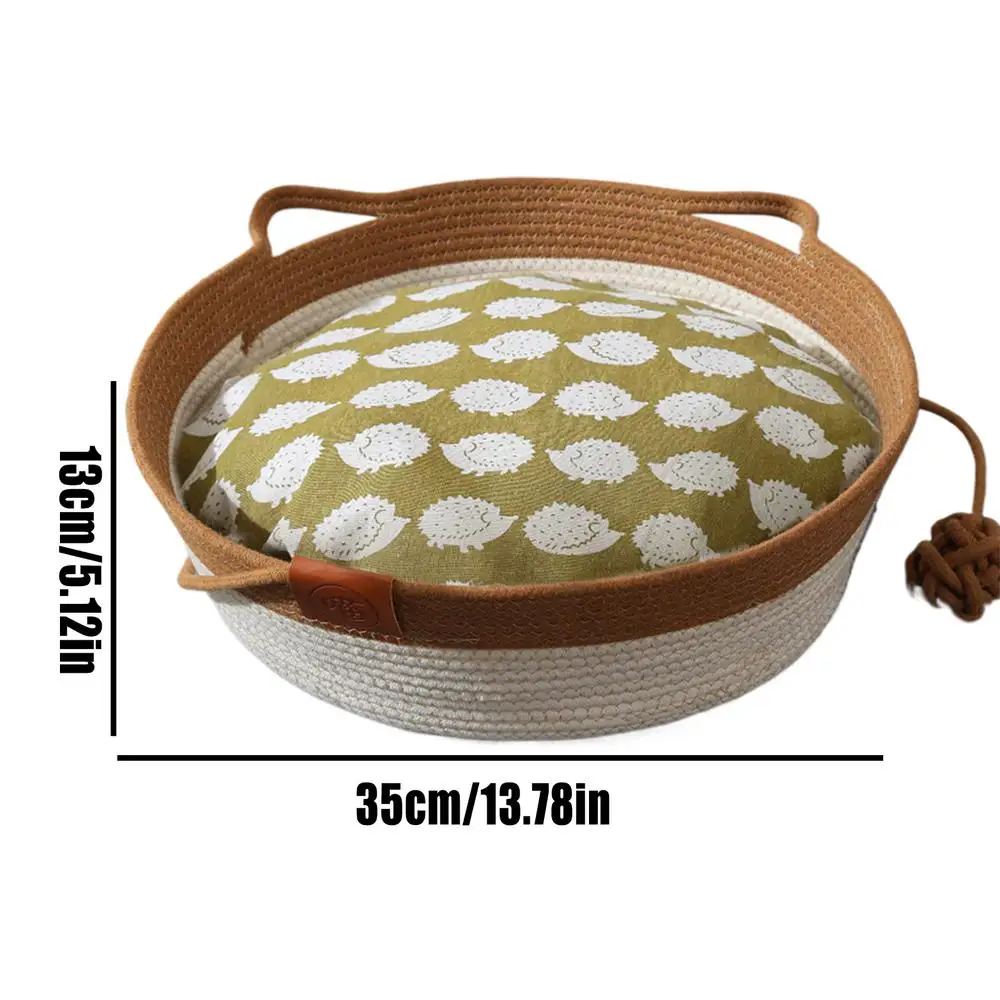 Puntos de viñeta:1. La comodidad se une a la durabilidad: con superficies transpirables y material resistente resistente a los arañazos, esta versátil canasta para gatos también funciona como cama y almohadilla para rascar, brindando un rendimiento confiable y sin preocupaciones para las actividades diarias de sus queridas mascotas 2. Función de juego interactiva: mantiene a los gatos entretenidos con una bola de hilo integradora, que promueve el compromiso activo y reduce el aburrimiento de una manera segura y agradable 3. Relajación redefinida: Diseñado como una solución de confort ideal que ofrece una zona para dormir segura con bordes elevados que brindan una relajación perfecta para su mascota 4. Tamaño adaptable para gatos: con un cojín extraíble y múltiples opciones de tamaño, esta canasta para gatos garantiza la comodidad de las mascotas mientras se adapta a varias razas de gatos sin esfuerzo 5. Diseño de prevención de rayones: combina protección de muebles con una utilidad versátil, protegiendo los muebles del hogar contra daños y rayones mientras sostiene perros pequeños y otras mascotas, promoviendo la armonía entre la propiedad y el mantenimiento interior. El cojín extraíble no solo es lujoso sino también lavable y ofrece comodidad sin comprometer la comodidad. Diseñado como un nido cómodo, cabe perfectamente al lado de las camas de las oficinas o cualquier espacio habitable, mejorando la experiencia de sueño de su gato de forma natural. Especificación: Nombre: 78x13. 78x5. 12 pulgadasM: aproximadamente 42x42x14cm/16. 54x16. 54x5. 51 pulgadas L: aproximadamente 48x48x15cm/18. 9x18. 9x5. 91 pulgadas Lista de empaque: 1 * Cama tejida para gatos 1 * Almohadilla Nota: Debido a las diferentes configuraciones de iluminación y pantalla, el color del artículo puede ser ligeramente diferente al de la imagen. Debido a las diferentes medidas manuales, permita una diferencia de tamaño de 1-2 cm.