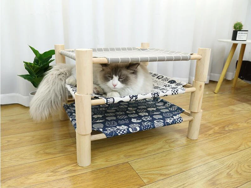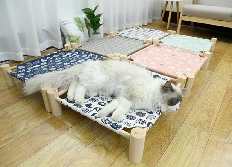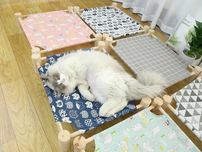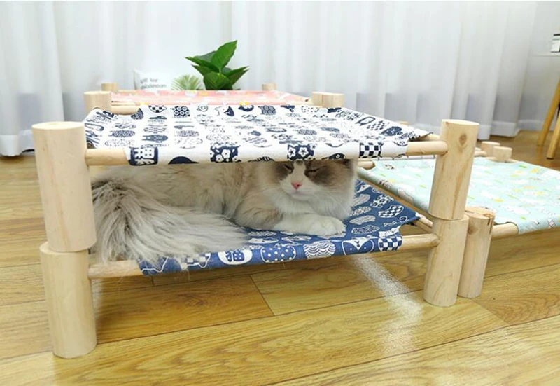 Suministros de salud y seguridad: los marcos de madera son fuertes y no hay necesidad de preocuparse por el colapso. Las hamacas son para facilitar la circulación del aire, buena permeabilidad al aire de la tela, mantener a las mascotas frescas y cómodas, y más saludables que dormir directamente en el suelo.