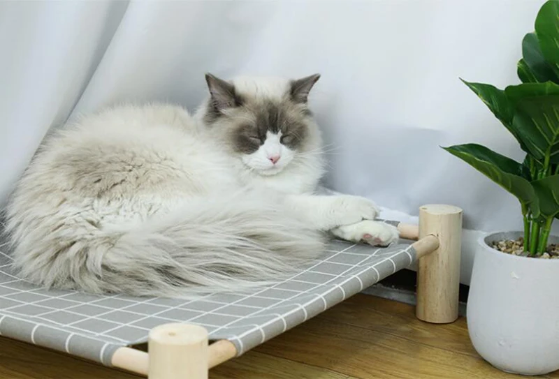 Cama elevada para gatos, hamacas para gatos, cama de lona de madera para gatos, cama de salón para perros pequeños, conejos, gatos, lona duradera, suministros para casas de mascotas