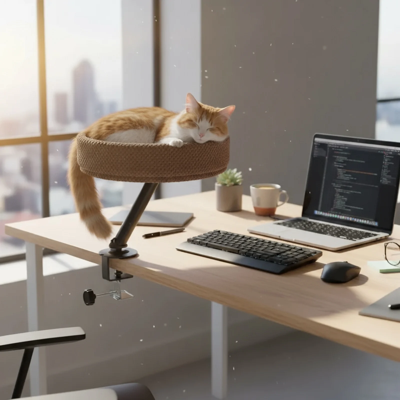 【Versatilidad】Funciona tanto como accesorio de escritorio como como cama para gatos, integrándose perfectamente en entornos de oficina o hogar.