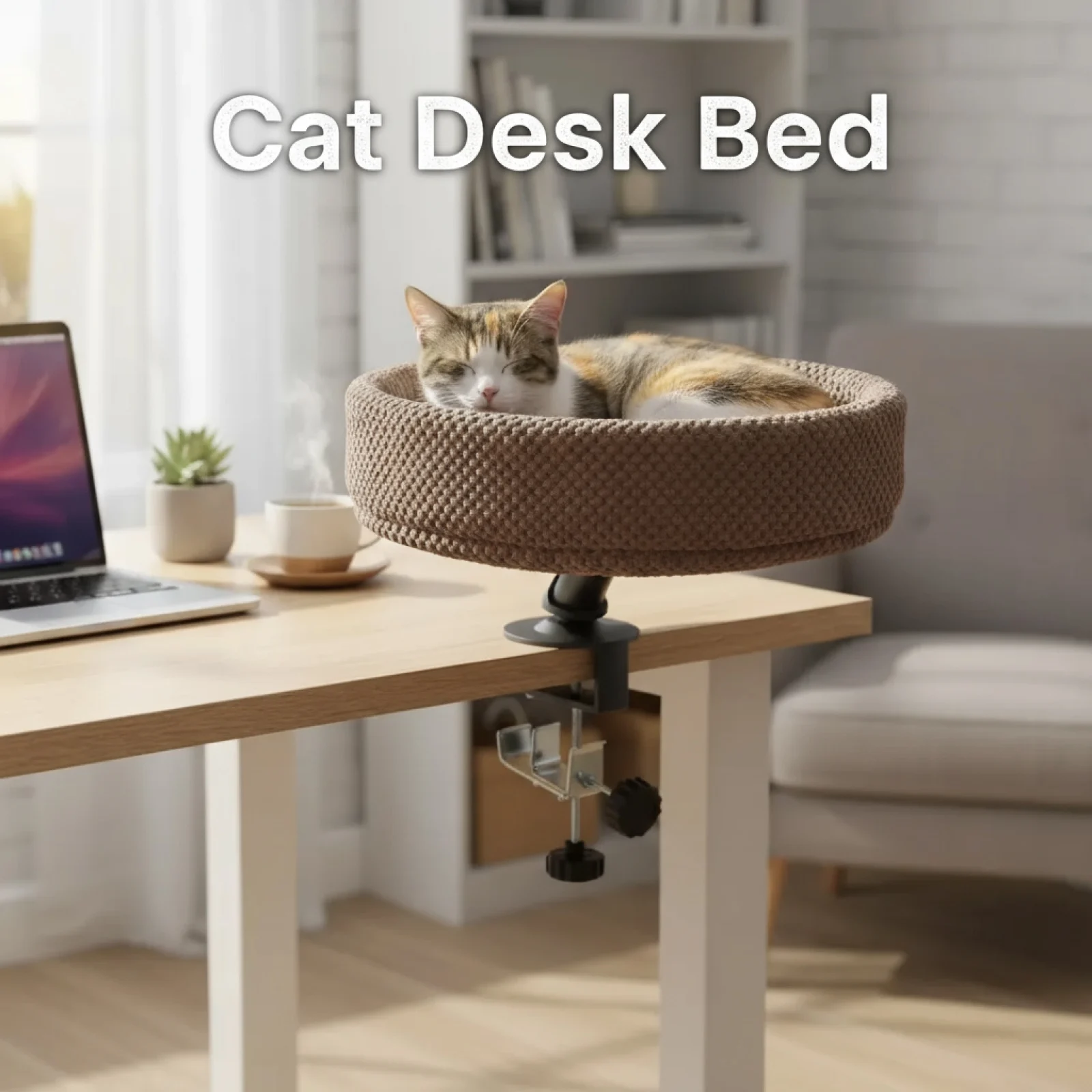 【Fácil configuración】Incluye 1 cama de escritorio para gatos con soporte para una instalación sencilla en su escritorio o espacio de trabajo