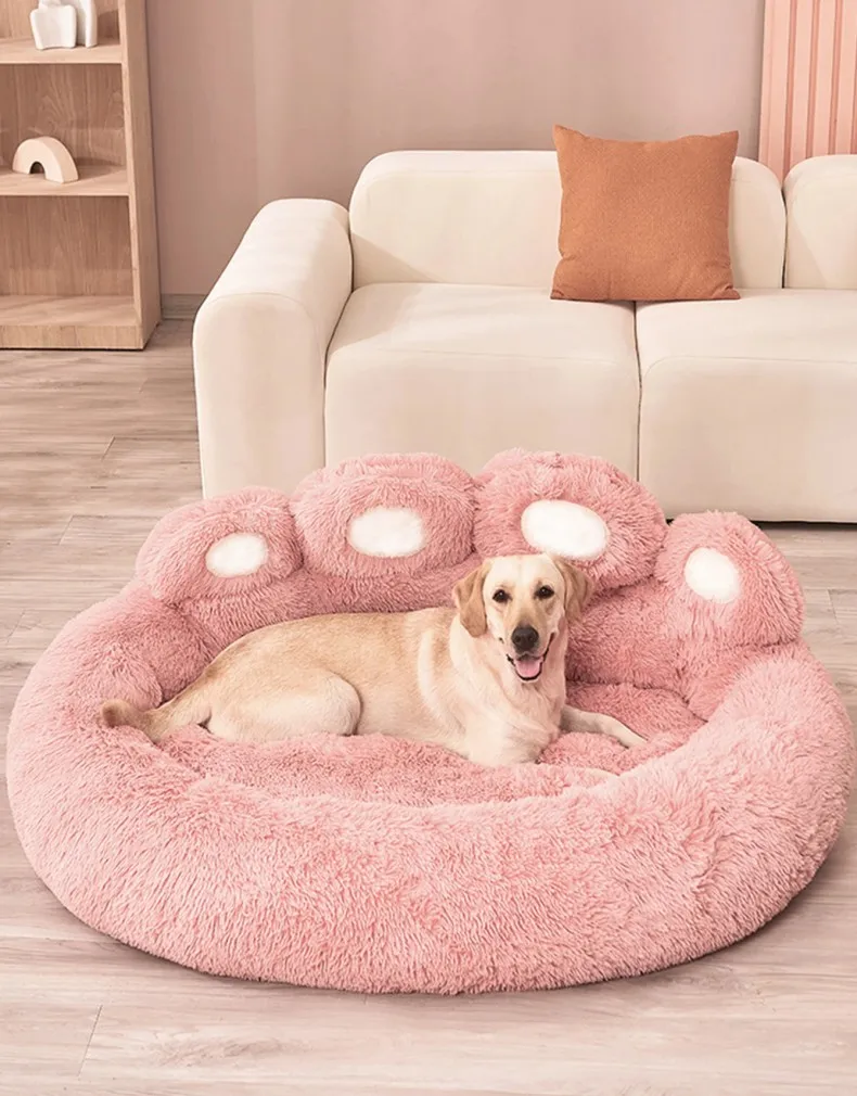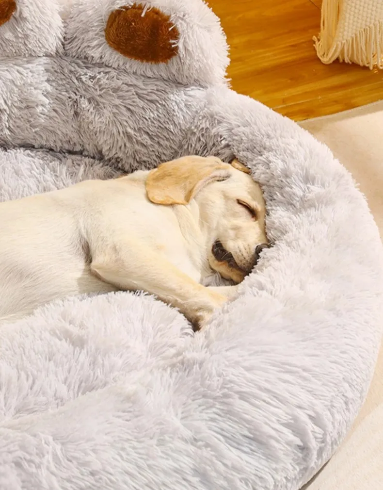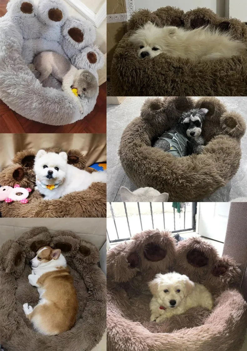 1.Material de felpa + algodón PP: la superficie de esta cama para mascotas está hecha de material de felpa, relleno de algodón PP, que es cómodo y suave.