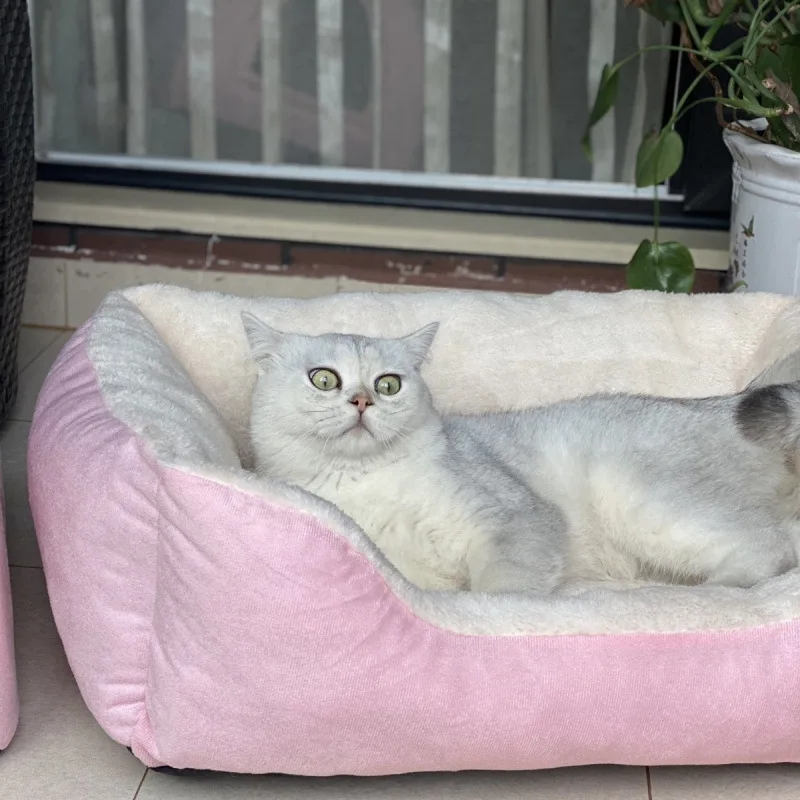 Cama de felpa para mascotas, sofá cuadrado, colchón con cojín suave para gatos y perros, casa para gatitos pequeños, estera de peluche, cama, suministros para mascotas, accesorios