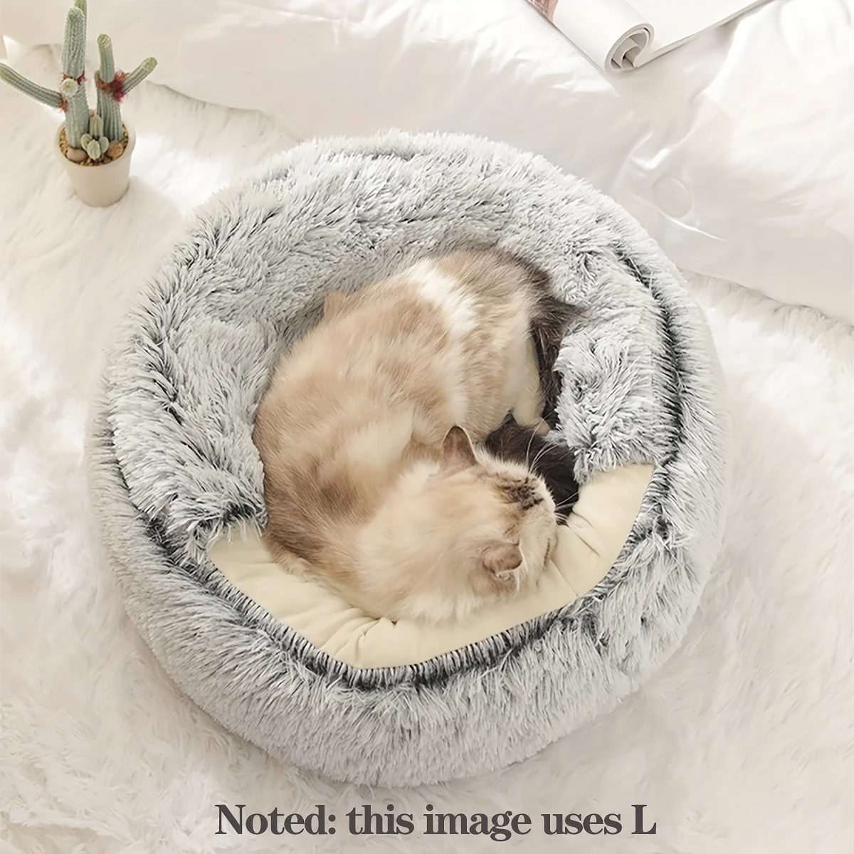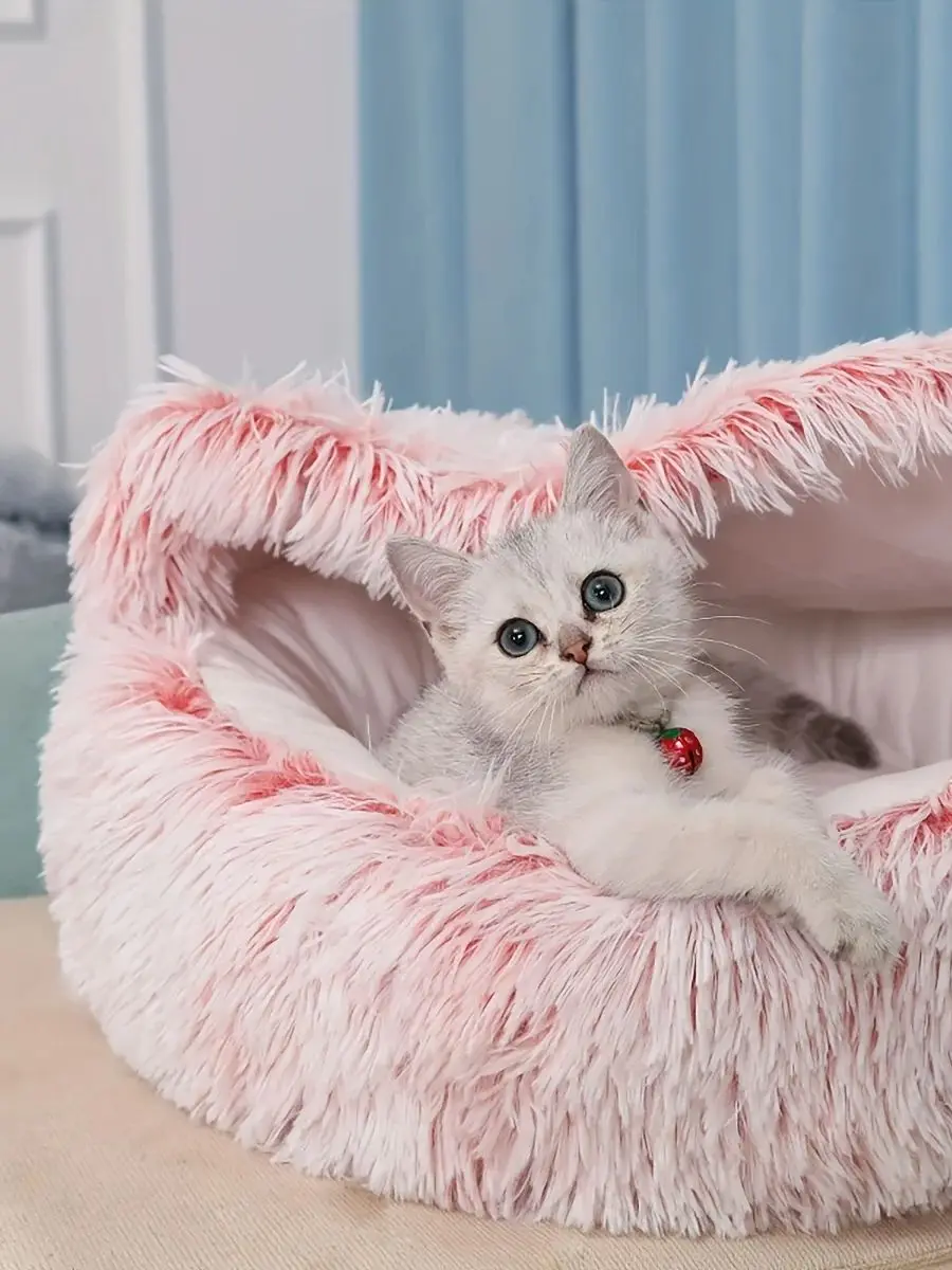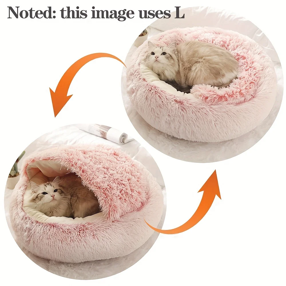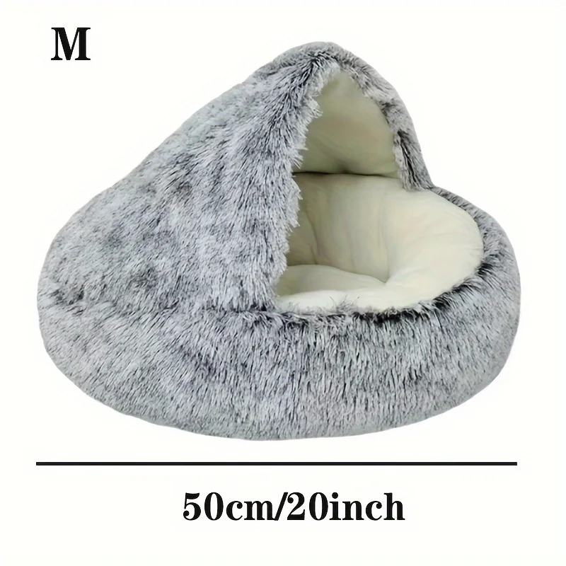 Nombre del producto: cama para mascotas de felpa suave con cubierta, cama redonda para gatos, colchón para mascotas, nido cálido para perros y gatos 2 en 1, cueva para perros pequeños