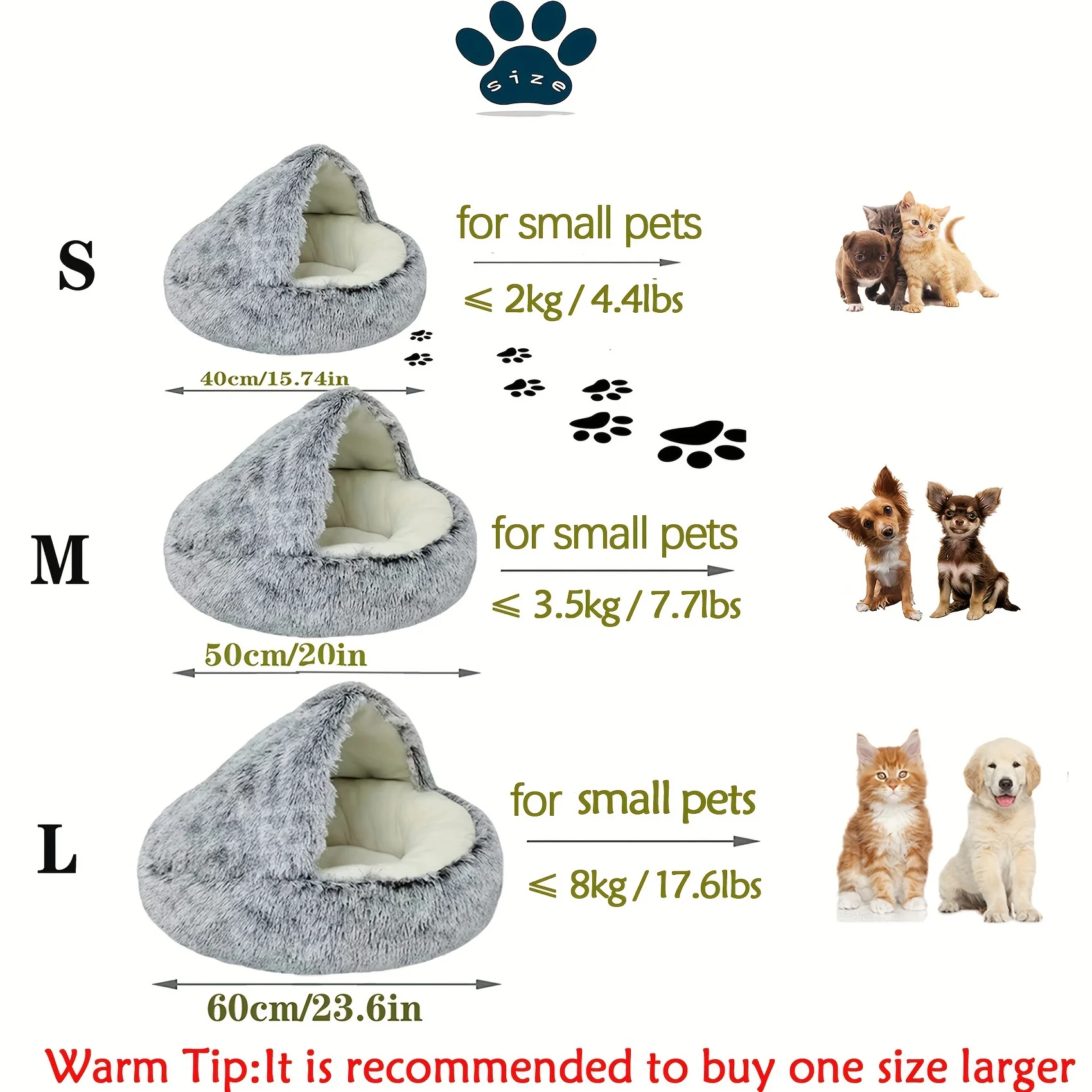 • Material de felpa:Elaborada con material de felpa suave, esta cama para mascotas proporciona un ambiente acogedor y cómodo para dormir para su gato o perro.