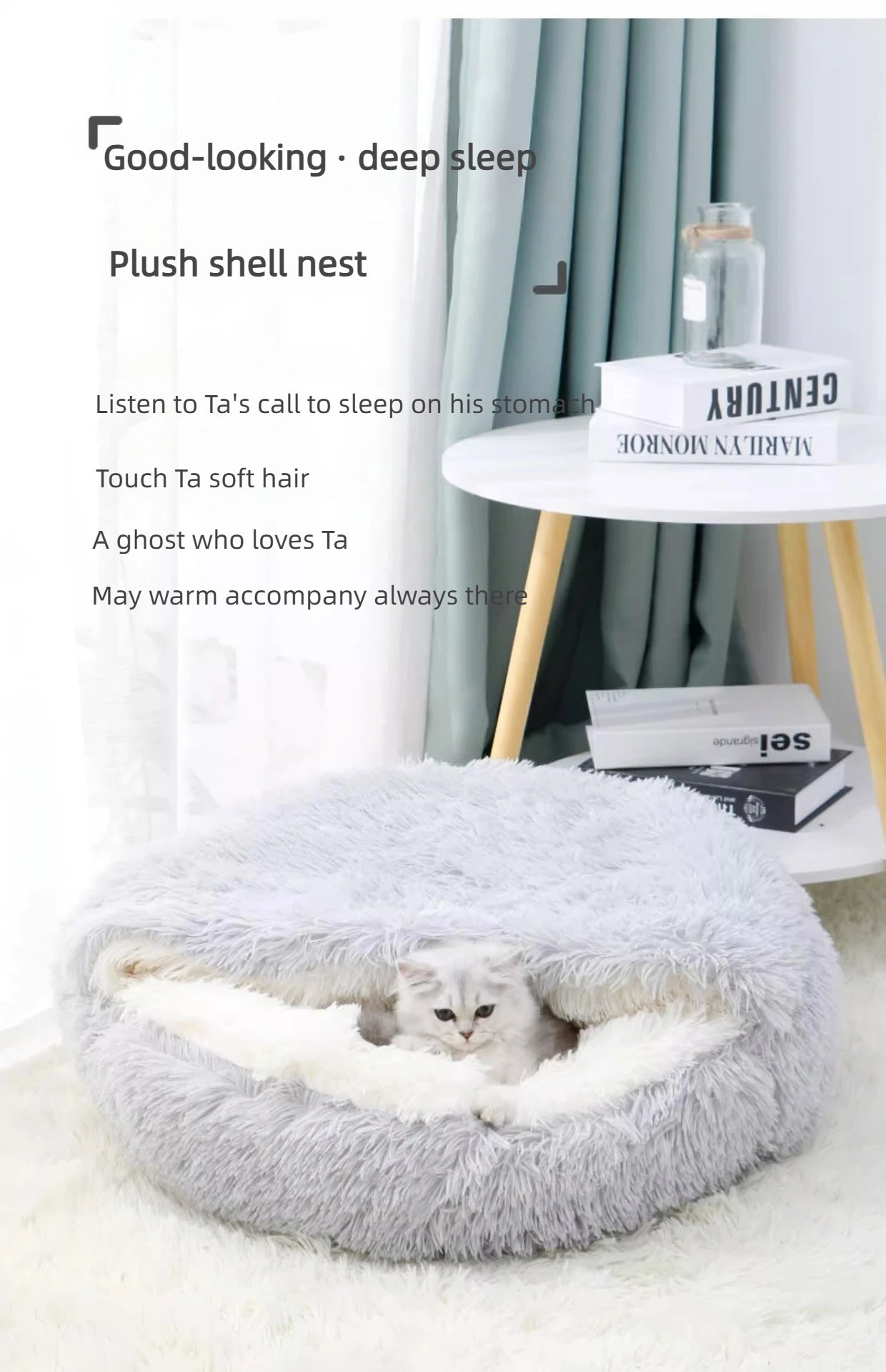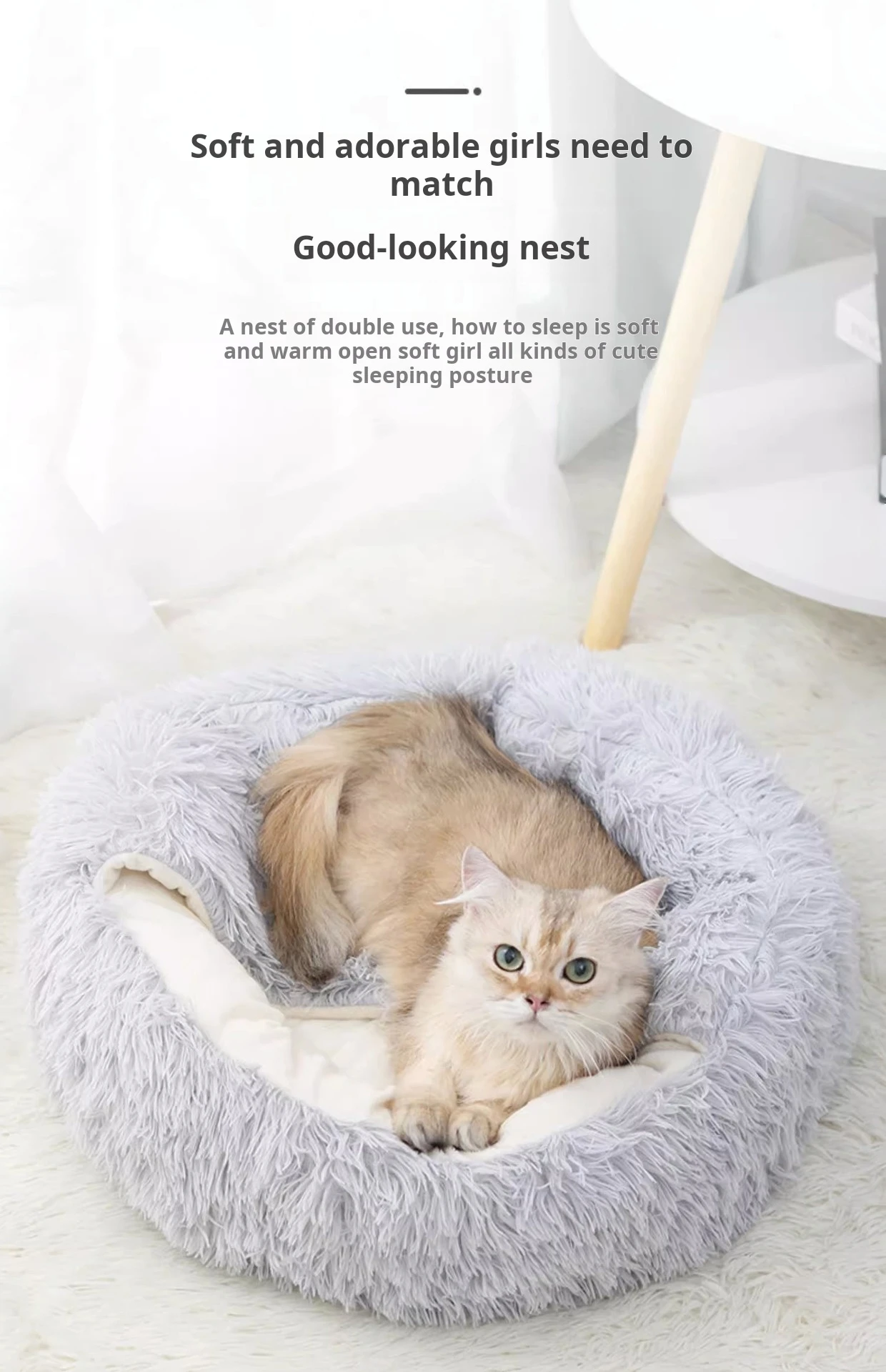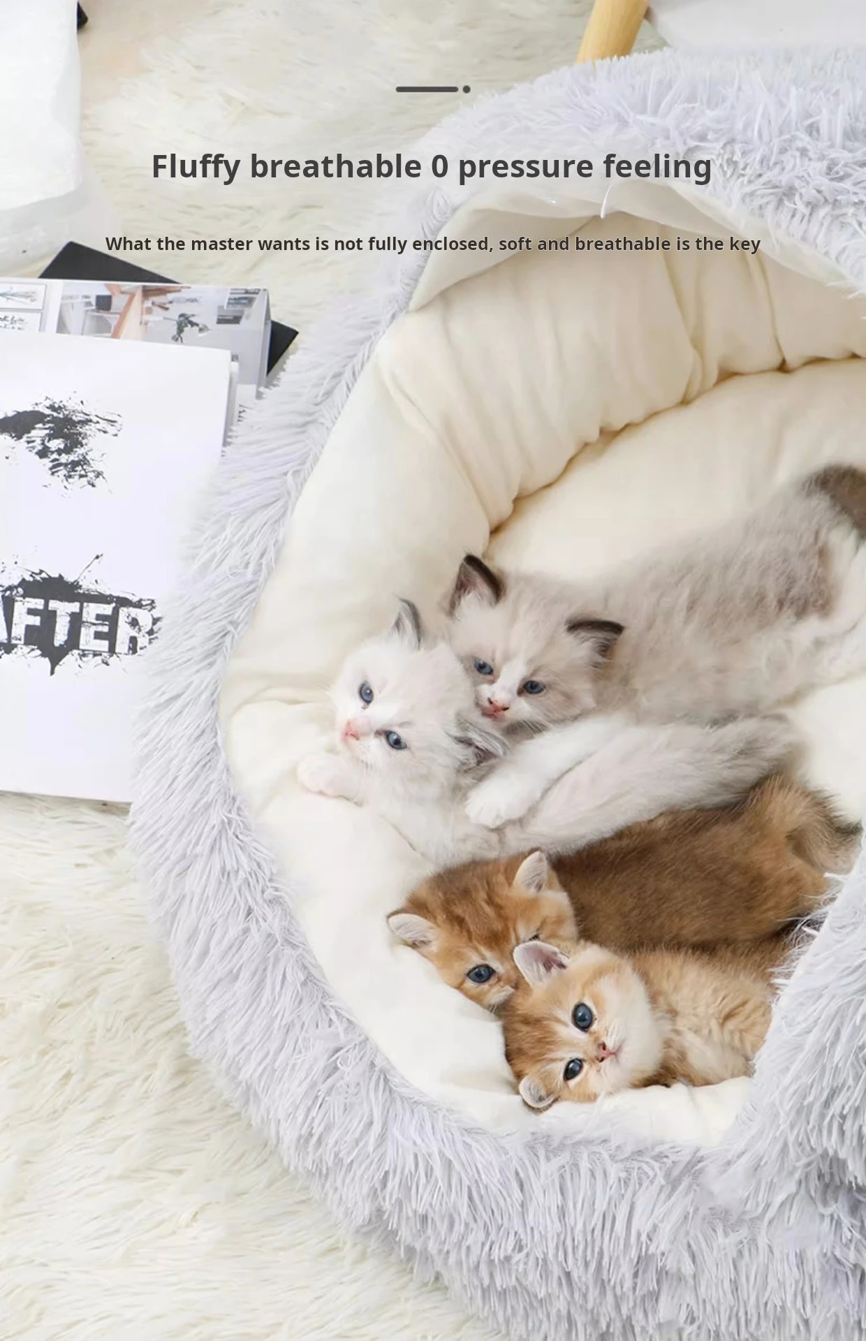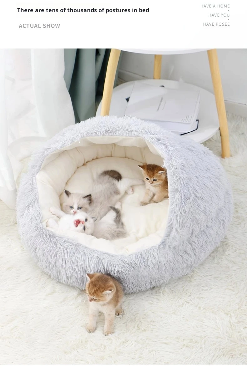 Cama de felpa suave para mascotas y cama para mascotas, edredón de felpa cálido y frío para invierno, nido para gatos semicerrado, otoño e invierno