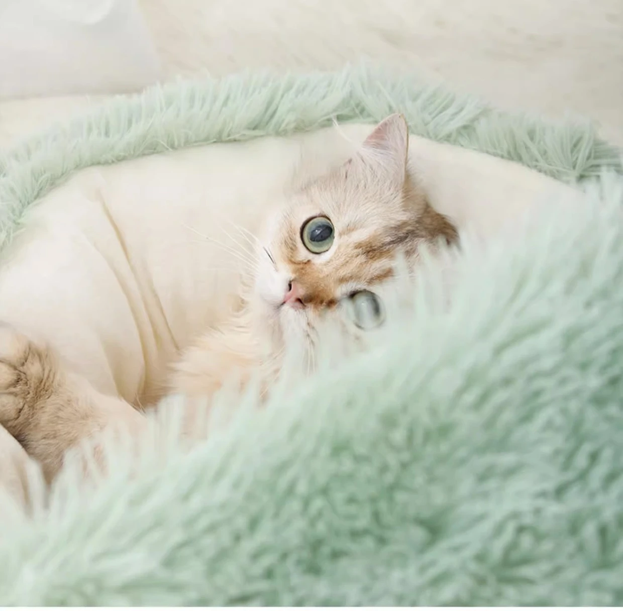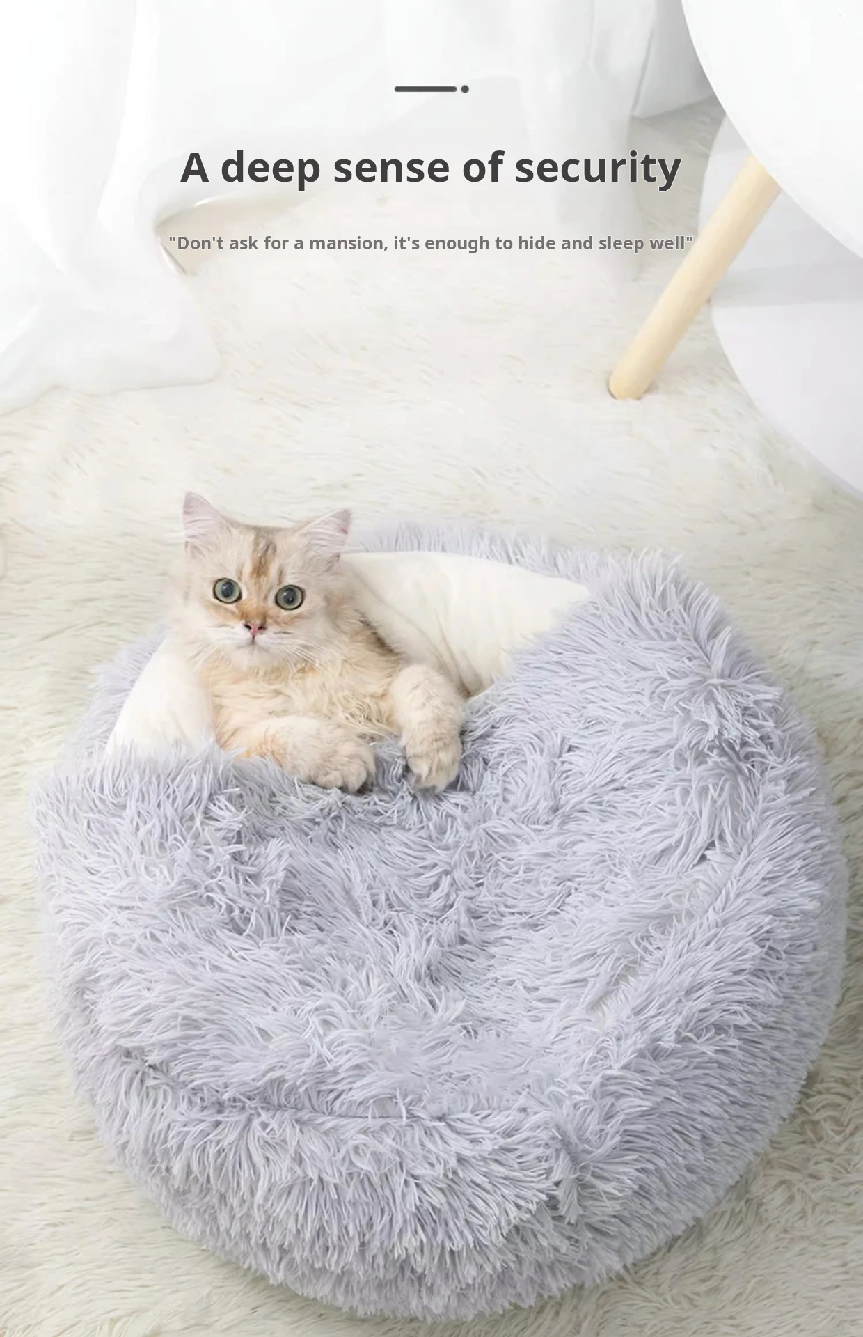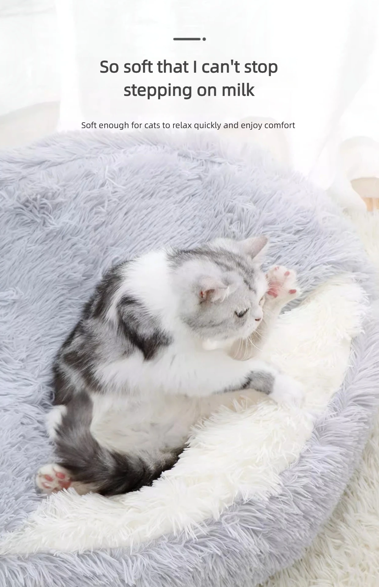 Cama de felpa suave para mascotas y cama para mascotas, edredón de felpa cálido y frío para invierno, nido para gatos semicerrado, otoño e invierno